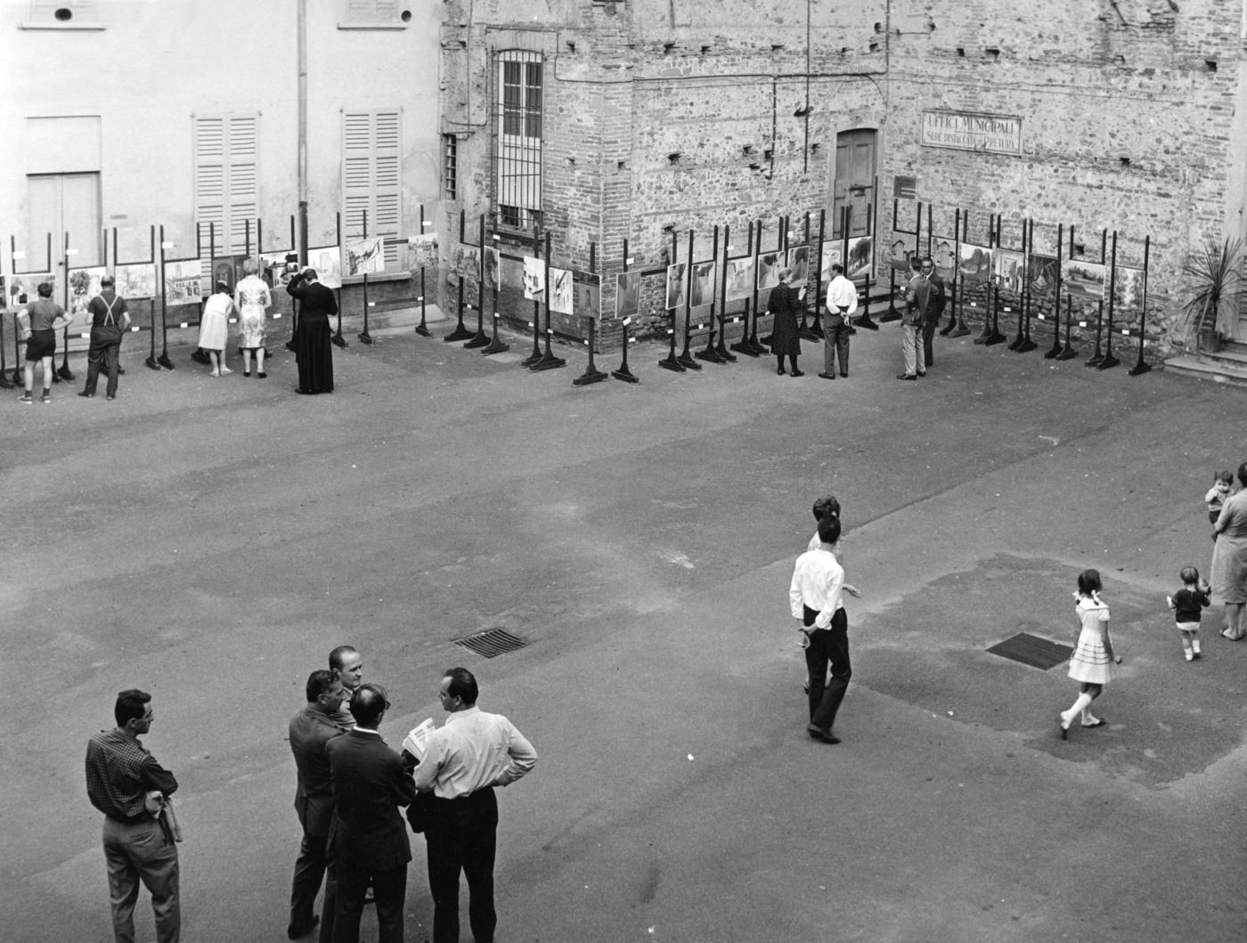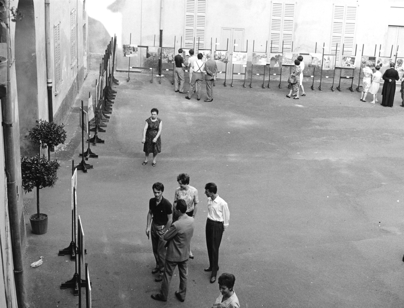 Concorso di pittura estemporanea Citta` di Vimercate: l'esposizione delle opere partecipanti nel cortile di Palazzo Trotti.