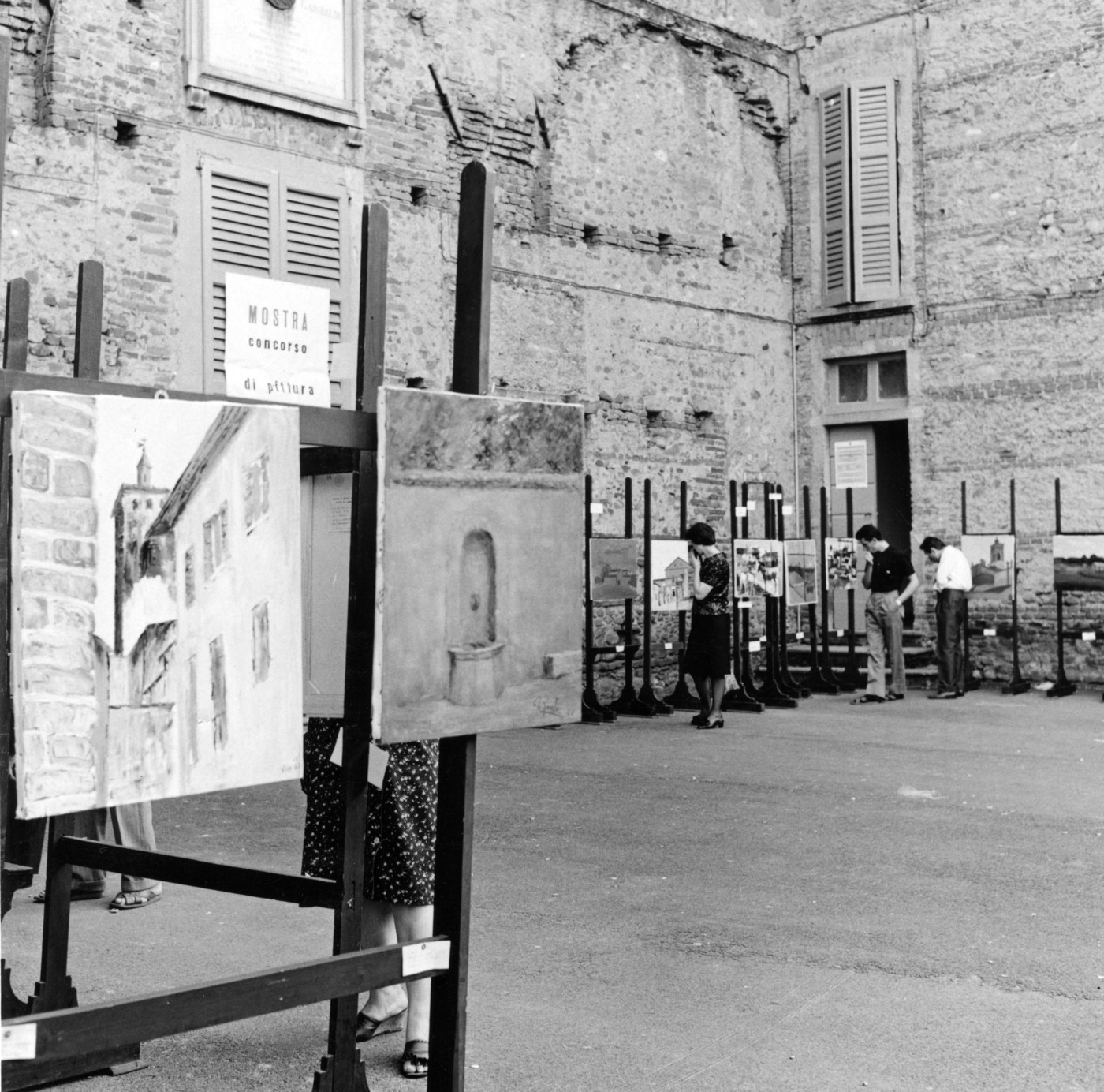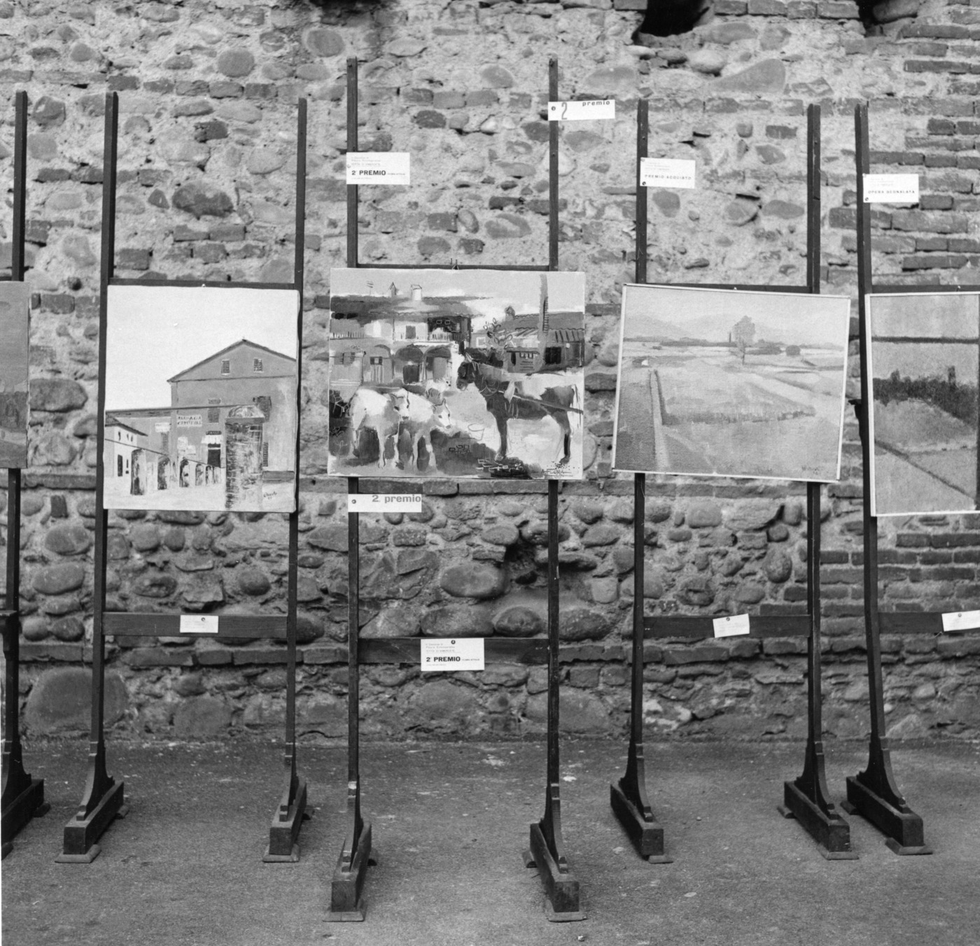 Concorso di pittura estemporanea Citta` di Vimercate: l'esposizione delle opere partecipanti nel cortile di Palazzo Trotti.