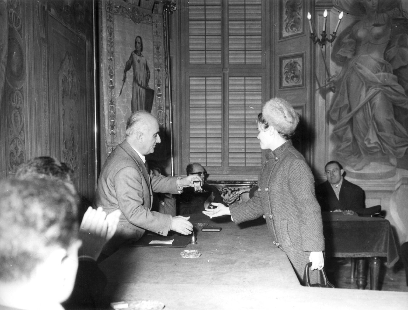 22 dicembre 1963: la consegna di una medaglia d'oro a Liala Sottovia, per meriti scolastici.