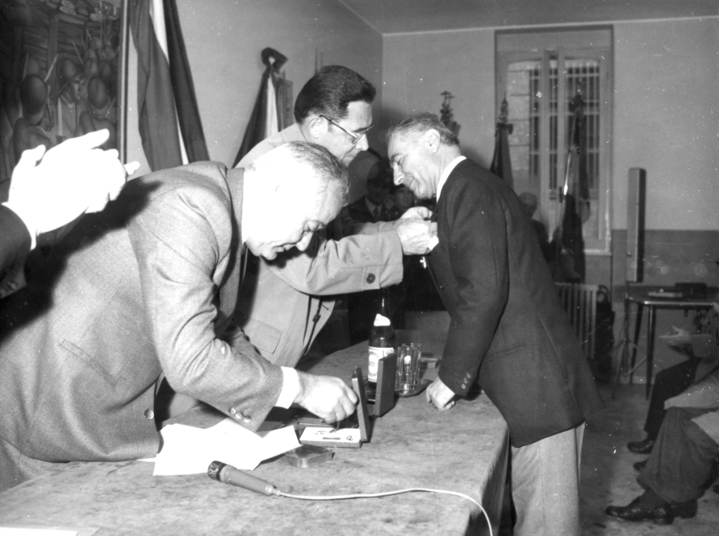 La cerimonia di consegna della croce di Cavaliere della Repubblica Italiana, svoltasi nel salone dell'Associazione