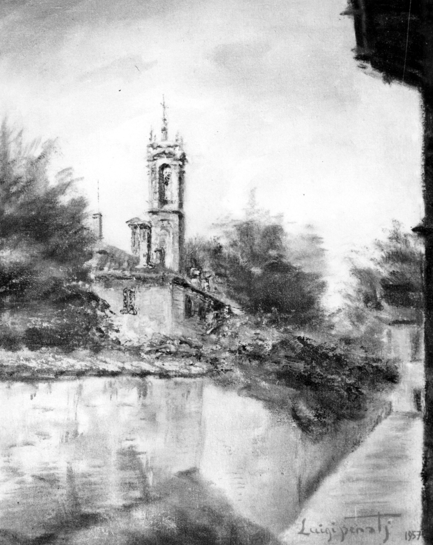 Il complesso del Convento di San Francesco di Oreno tratto da un disegno a carboncino del pittore locale Luigi Penati,
