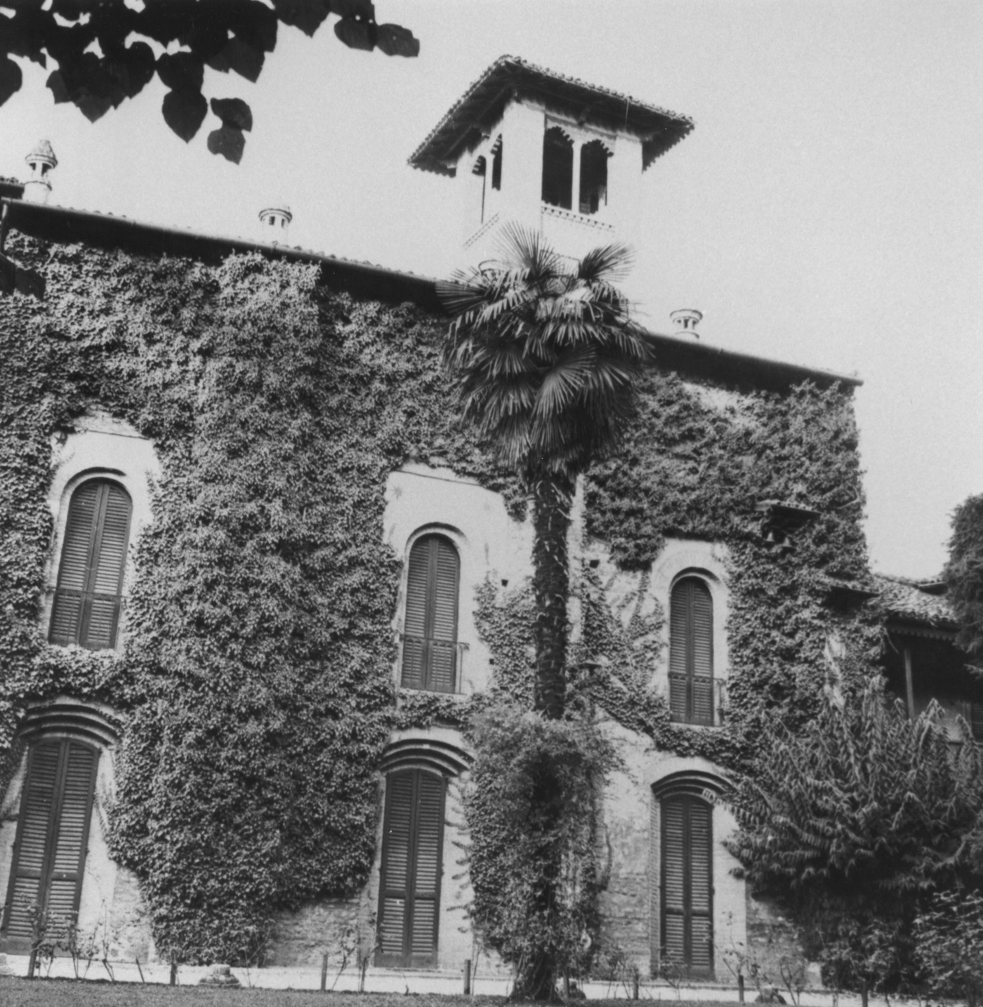 Parte della facciata meridionale dell'ex Convento di San Francesco ora Casa Banfi, dopo i lavori di ristrutturazione avvenuti nel 1927. Riproduzione di foto d'epoca.
