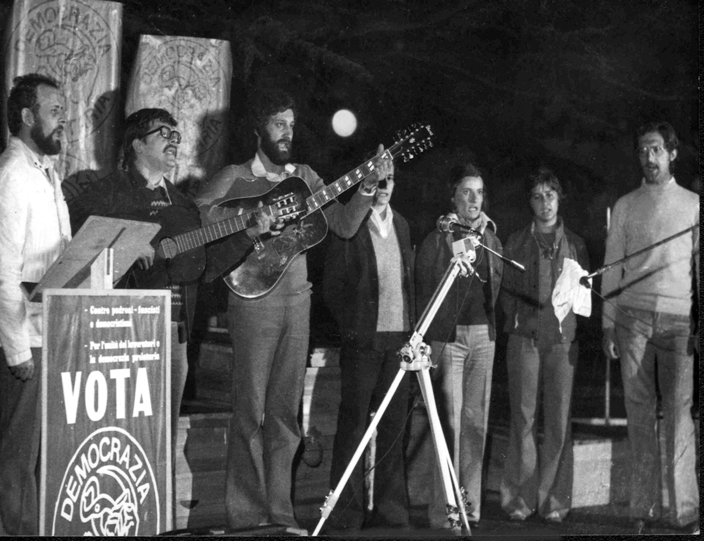 Un'esibizione della compagnia teatrale Il Portone a Oreno a sostegno della campagna elettorale del partito Democrazia