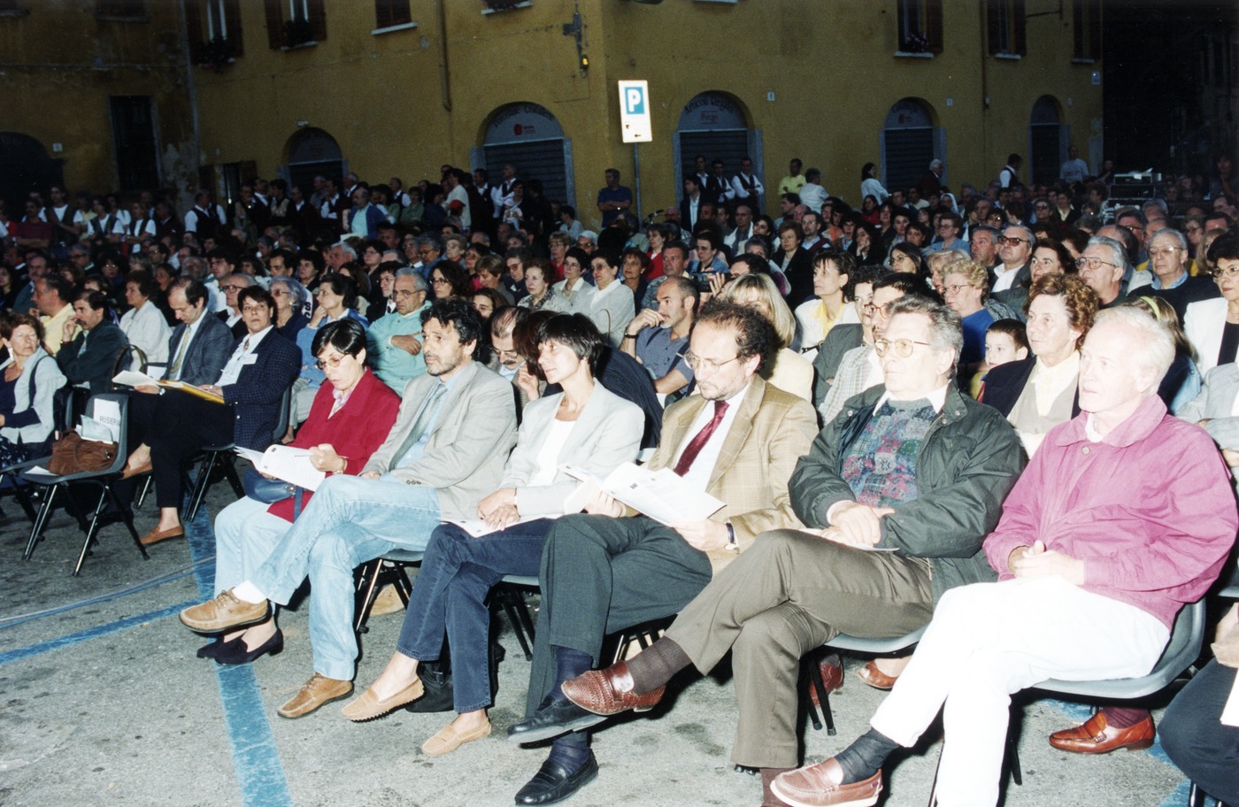 Il pubblico intervenuto in Piazza Castellana ad assistere all'esibizione dei cori vincitori della rassegna corale "Suoni e voci da antichi palazzi".