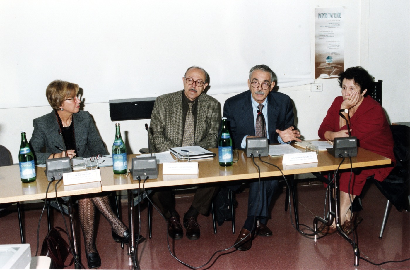 I relatori del convegno "Oltre noi...la vita", svoltosi nell'auditorium della Biblioteca civica sabato 23 ottobre 1999; da sinistra: