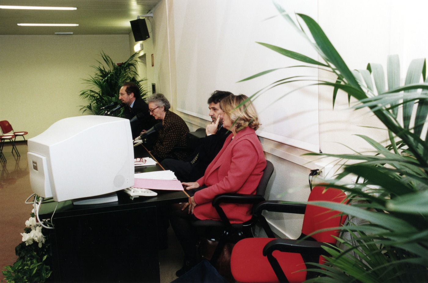 presso l'auditorium della Biblioteca civica il 25 novembre 1999; in alto, Marzio Tremaglia (assessore alla Cultura della