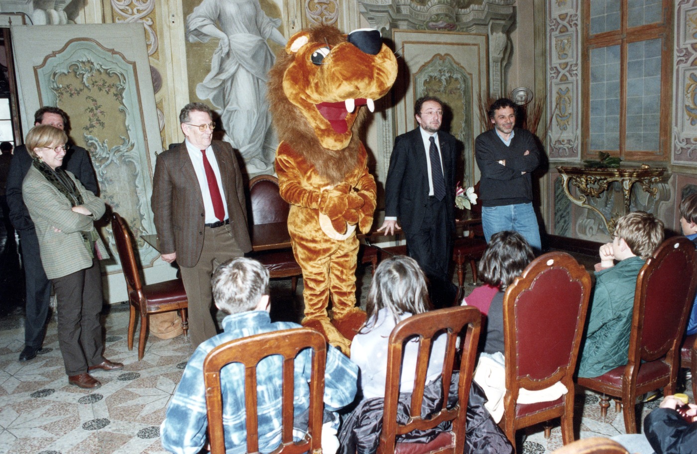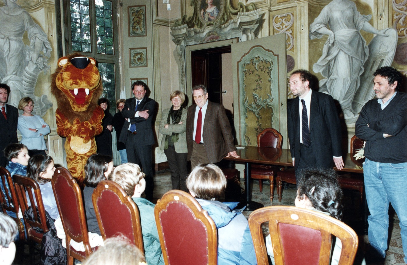 autorita` comunali e con l'intervento della mascotte Leo Stemma. In alto, i rappresentanti del Consiglio comunale dei ragazzi.