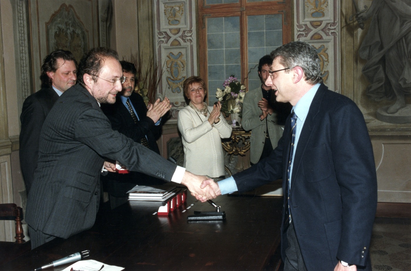 Trotti il 21 dicembre 2000. In basso, il discorso di ringraziamento di Walter Verderio.