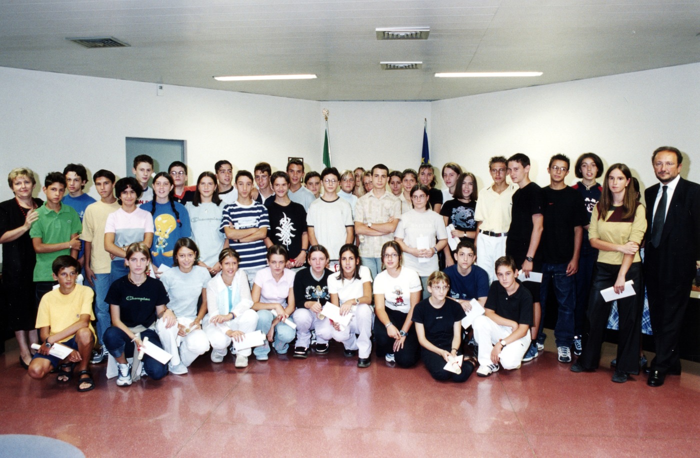 Foto di gruppo in occasione della consegna delle borse di studio e dei premi di studio agli studenti meritevoli delle scuole