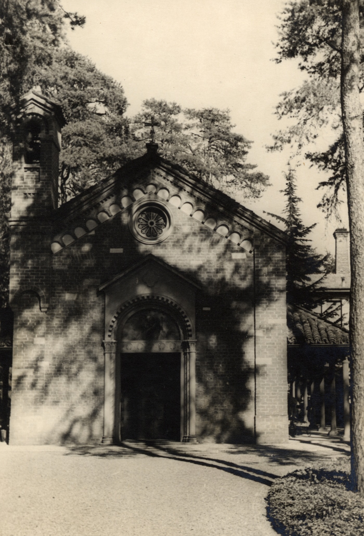 La facciata della Chiesa del Sanatorio femminile di Ornago, costruita nel 1923 in stile neoromanico.