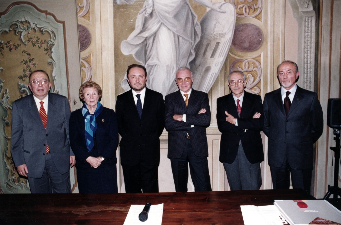 Il gruppo dei cittadini vimercatesi benemeriti premiati il 21 dicembre 2001 a Palazzo Trotti. Da destra: Fausto Scaccabarozzi