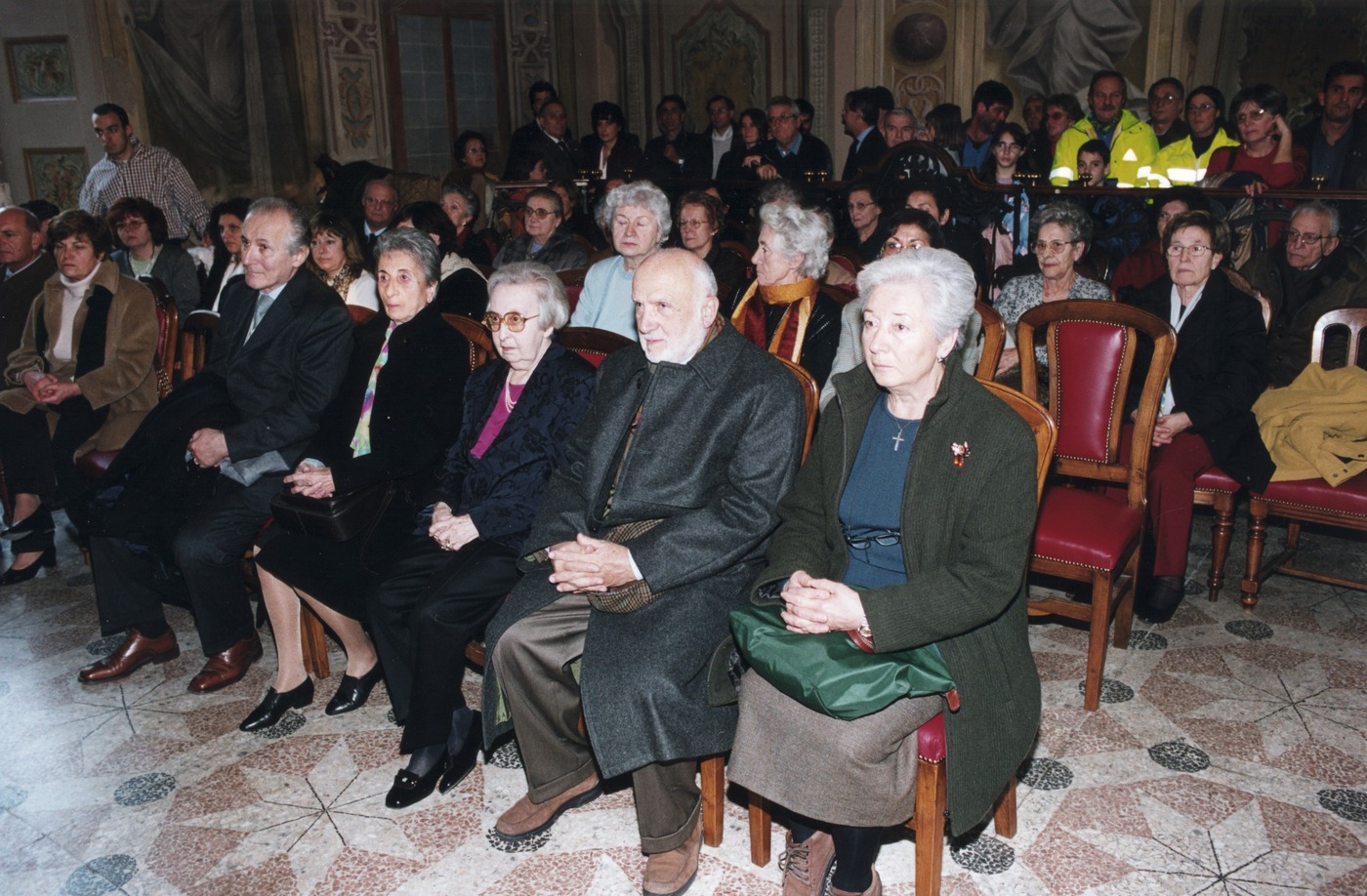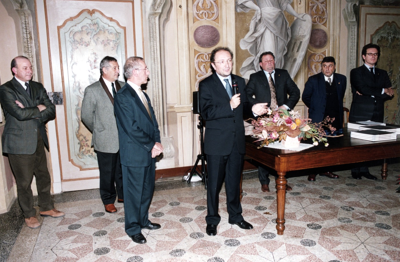 svoltasi nella Sala Cleopatra di Palazzo Trotti nel dicembre 2002. In alto, da destra, gli assessori Andrea Rurale, Giuseppe