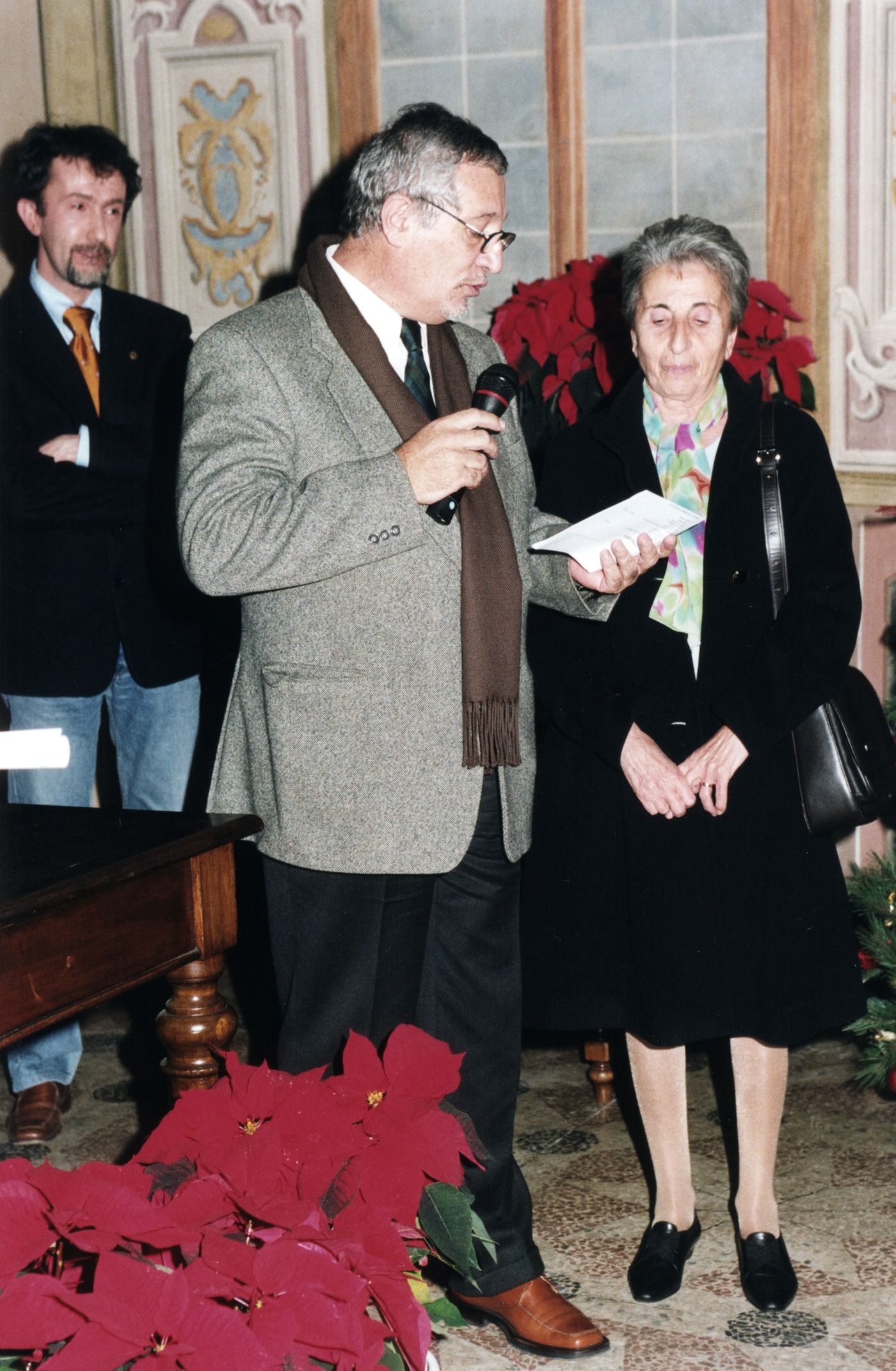 Claudio Corno legge la motivazione del riconoscimento accordato a Carla Cagnola Corno.