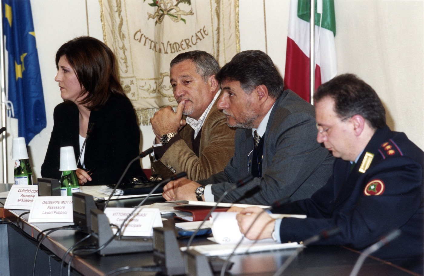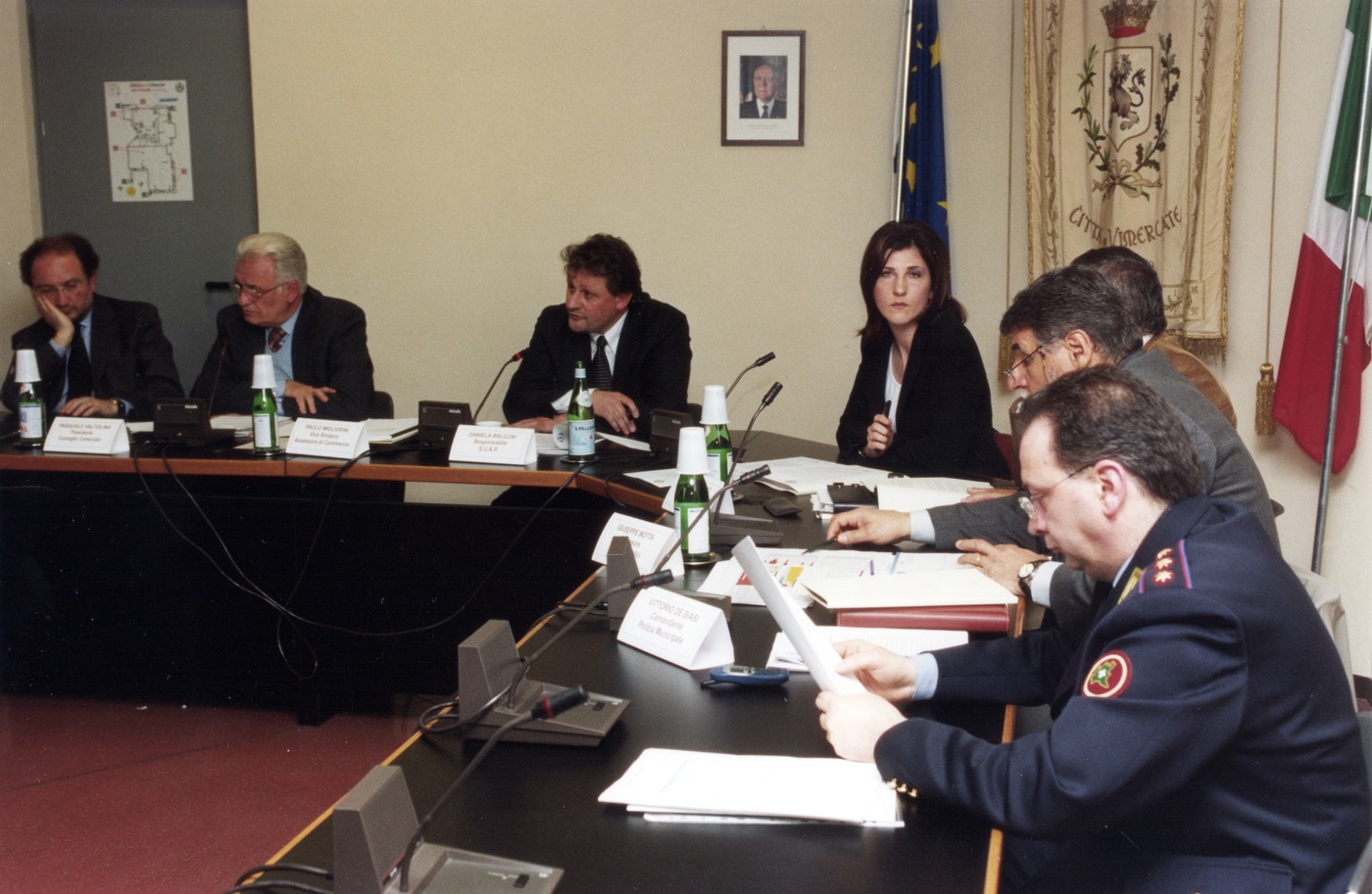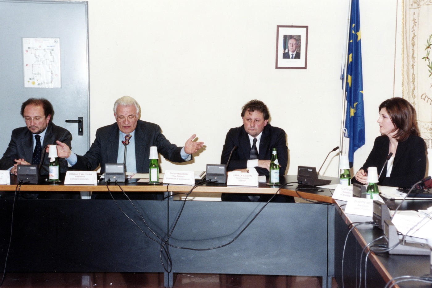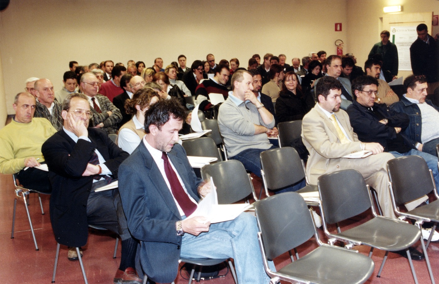 Immagini del convegno "Il commercio a Vimercate", svoltosi presso l'auditorium della Biblioteca civica il 31 marzo 2003. Tra i