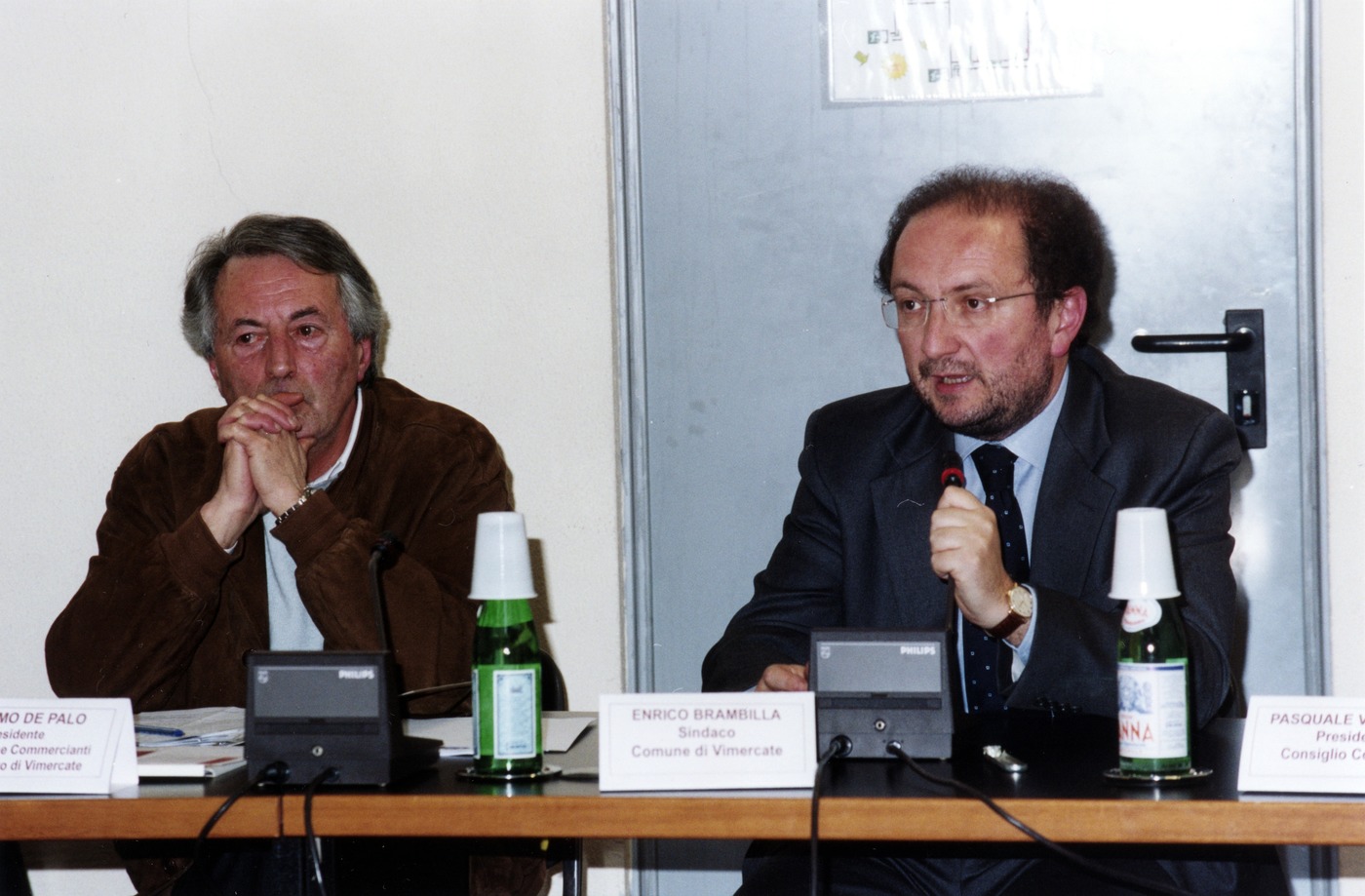relatori: nella prima foto dall'alto, il sindaco Enrico Brambilla (a destra); nella seconda foto dall'alto Michele Del Prete (a sinistra)