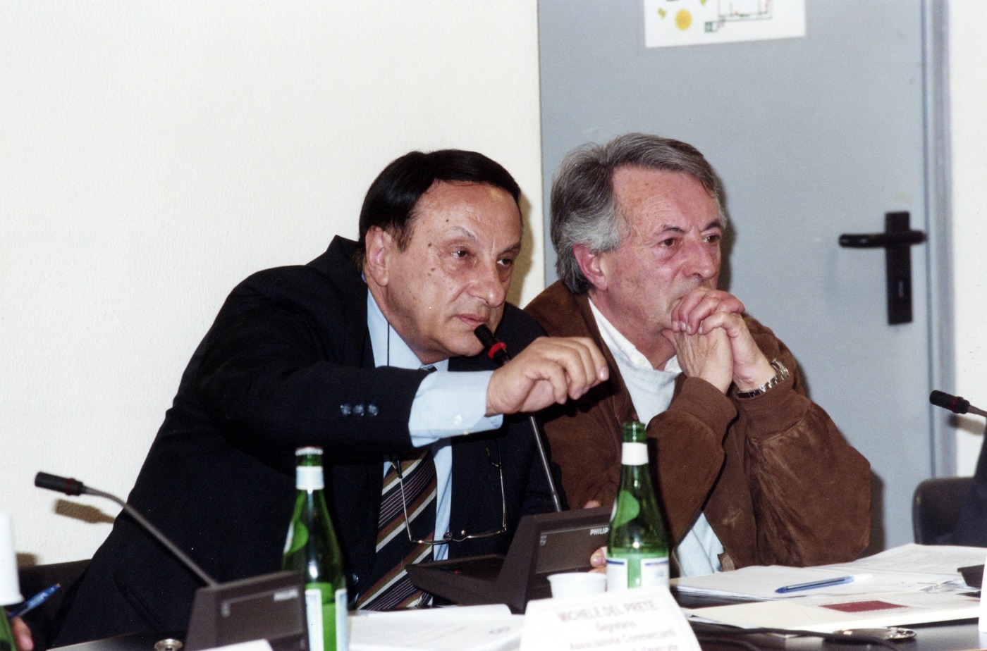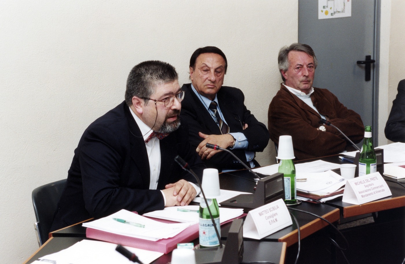 Immagini del convegno "Il commercio a Vimercate", svoltosi presso l'auditorium della Biblioteca civica il 31 marzo 2003. Tra i