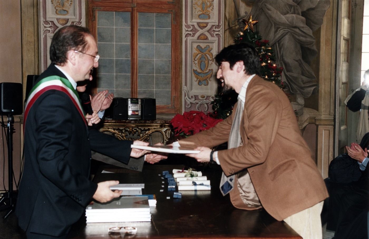 19 dicembre 2003. In alto, la consegna un riconoscimento da parte del sindaco Enrico Brambilla.