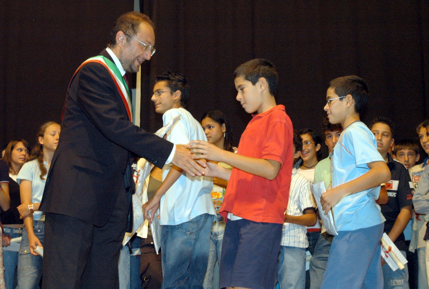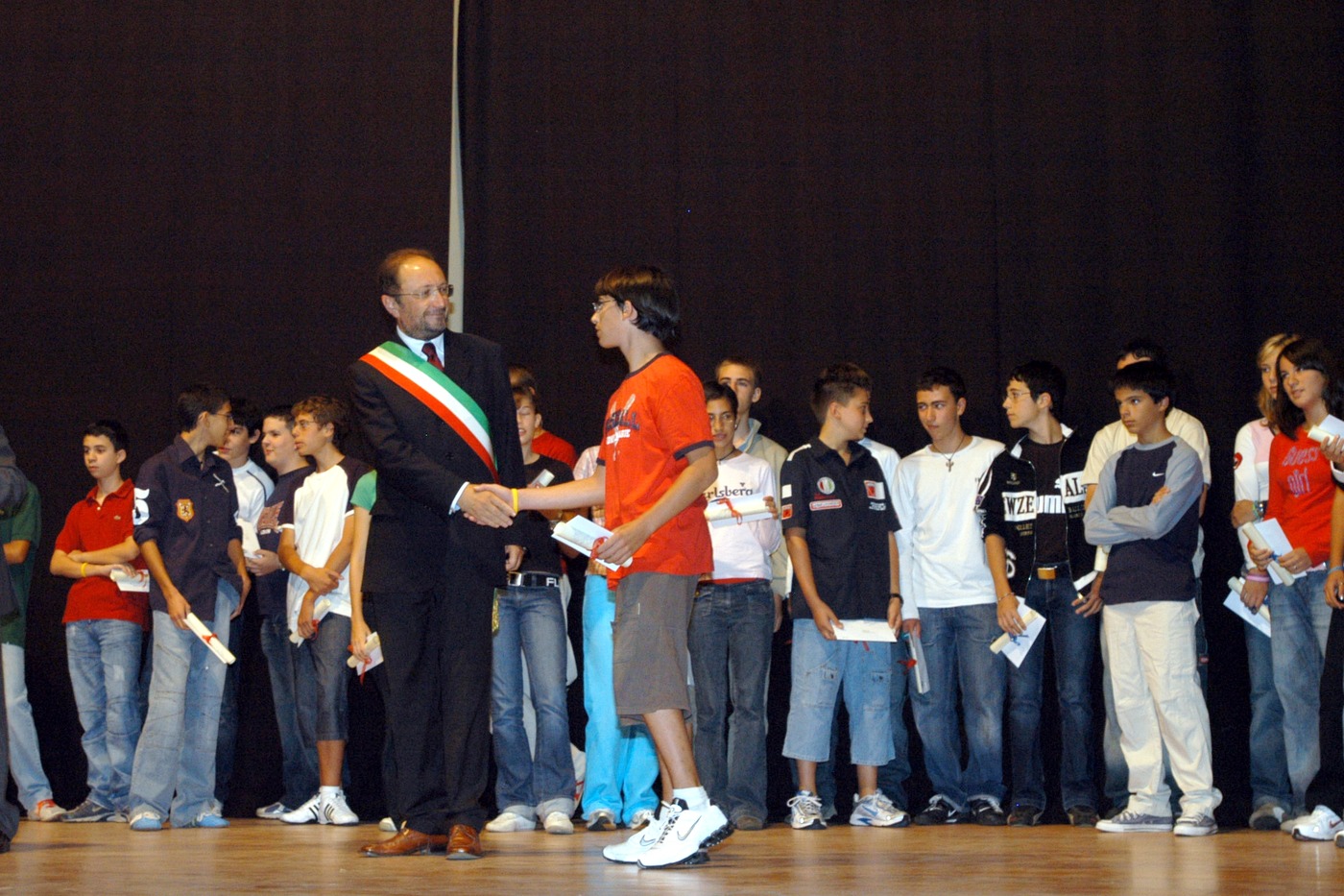Il sindaco Enrico Brambilla premia alcuni studenti meritevoli in occasione della cerimonia di consegna delle borse di studio e dei premi di studio.