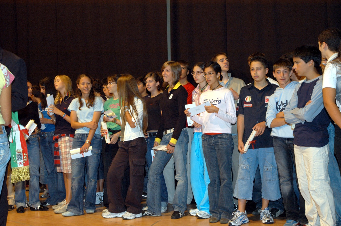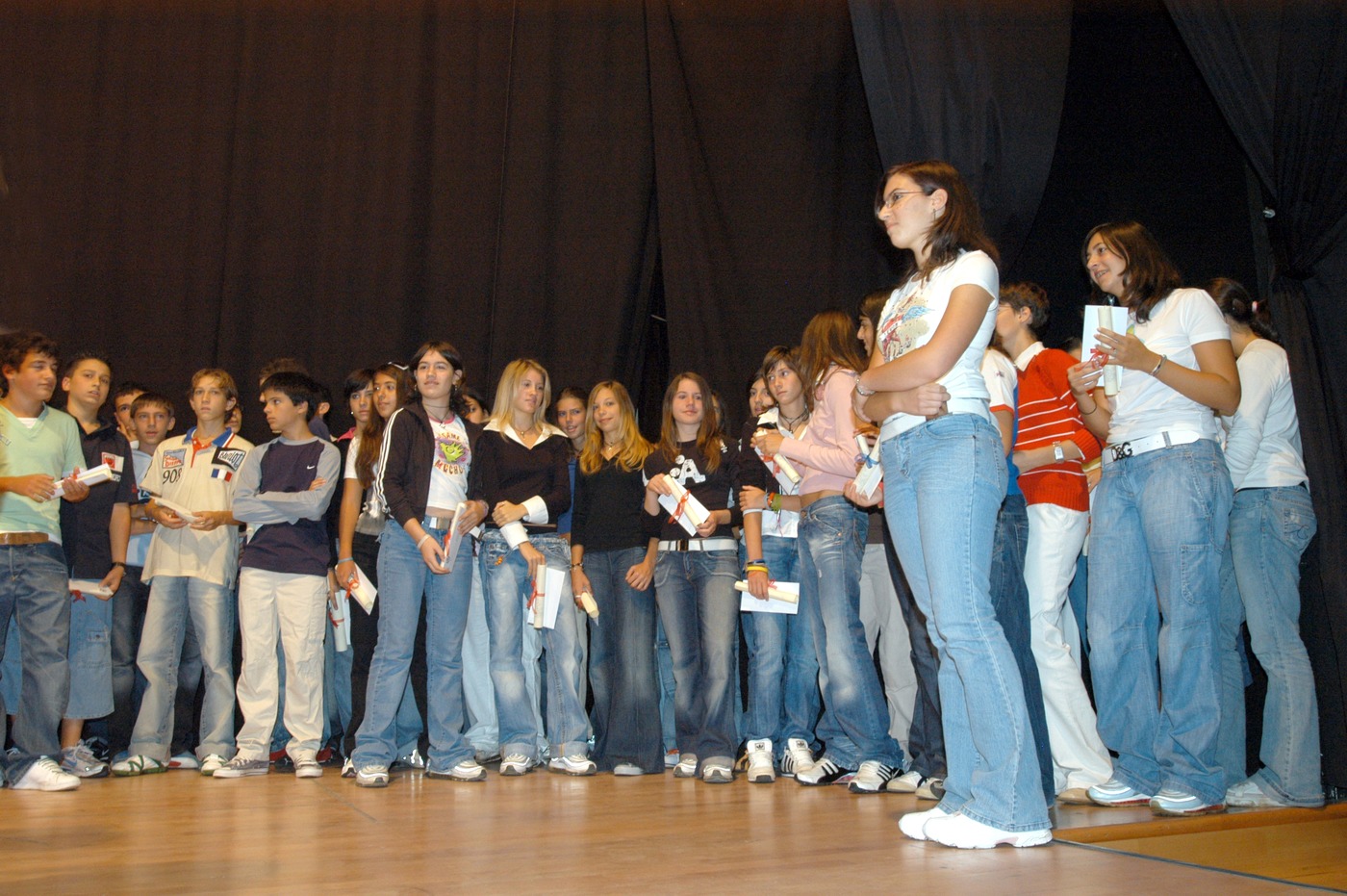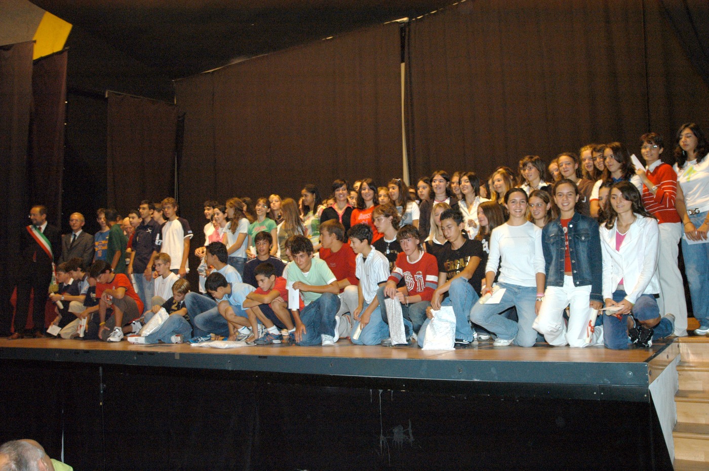 I ragazzi premiati in occasione della consegna delle borse di studio e dei premi di studio agli studenti meritevoli delle scuole medie di Vimercate.