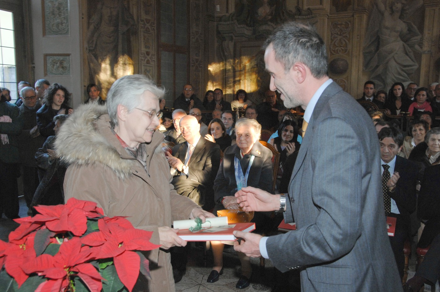 vimercatesi benemeriti, svoltasi nella Sala Cleopatra di Palazzo Trotti nel dicembre 2006. In basso, la premiazione di Luigia