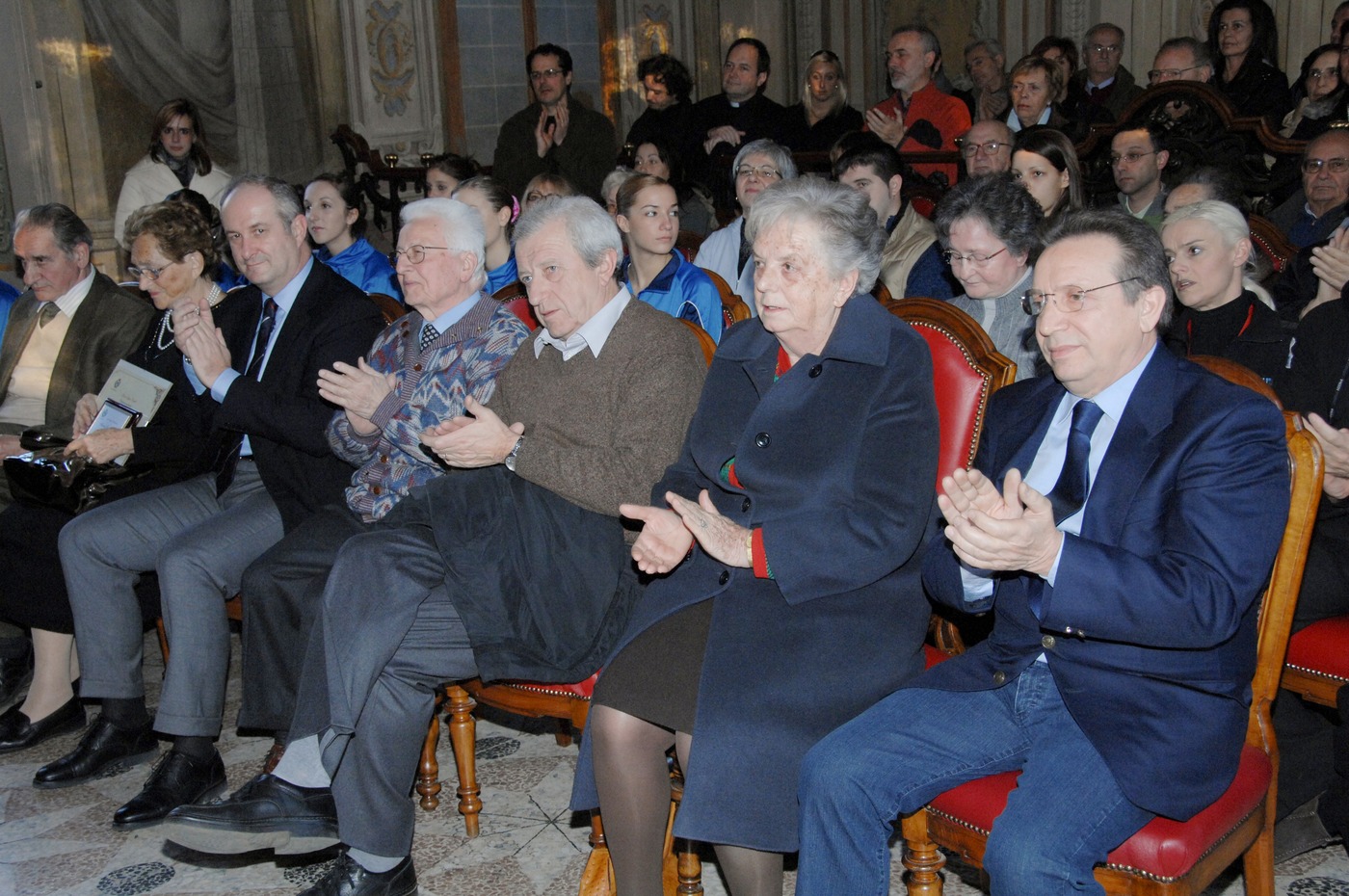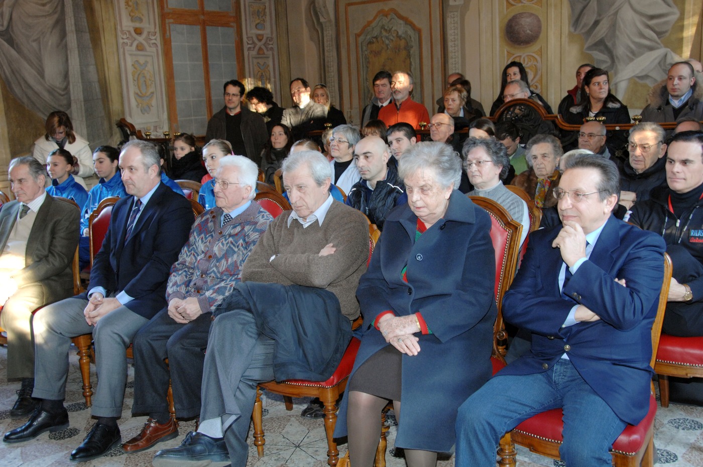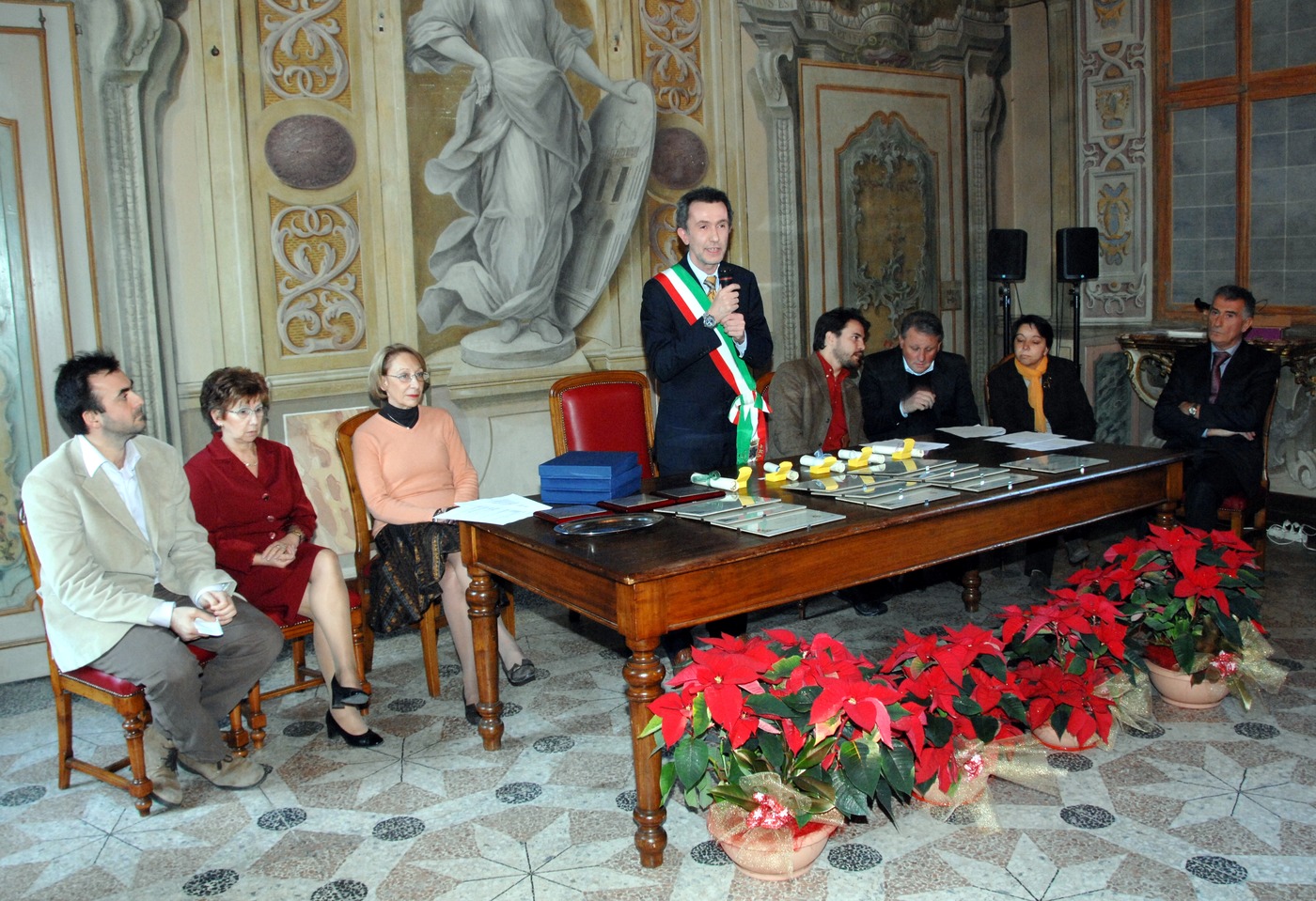 svoltasi nella Sala Cleopatra di Palazzo Trotti il 21 dicembre 2007. In alto, da destra, gli assessori Angelo Villa, Laura Curti,