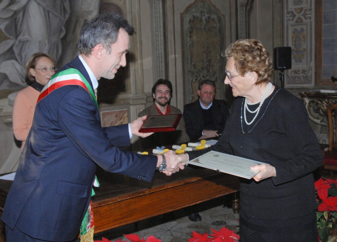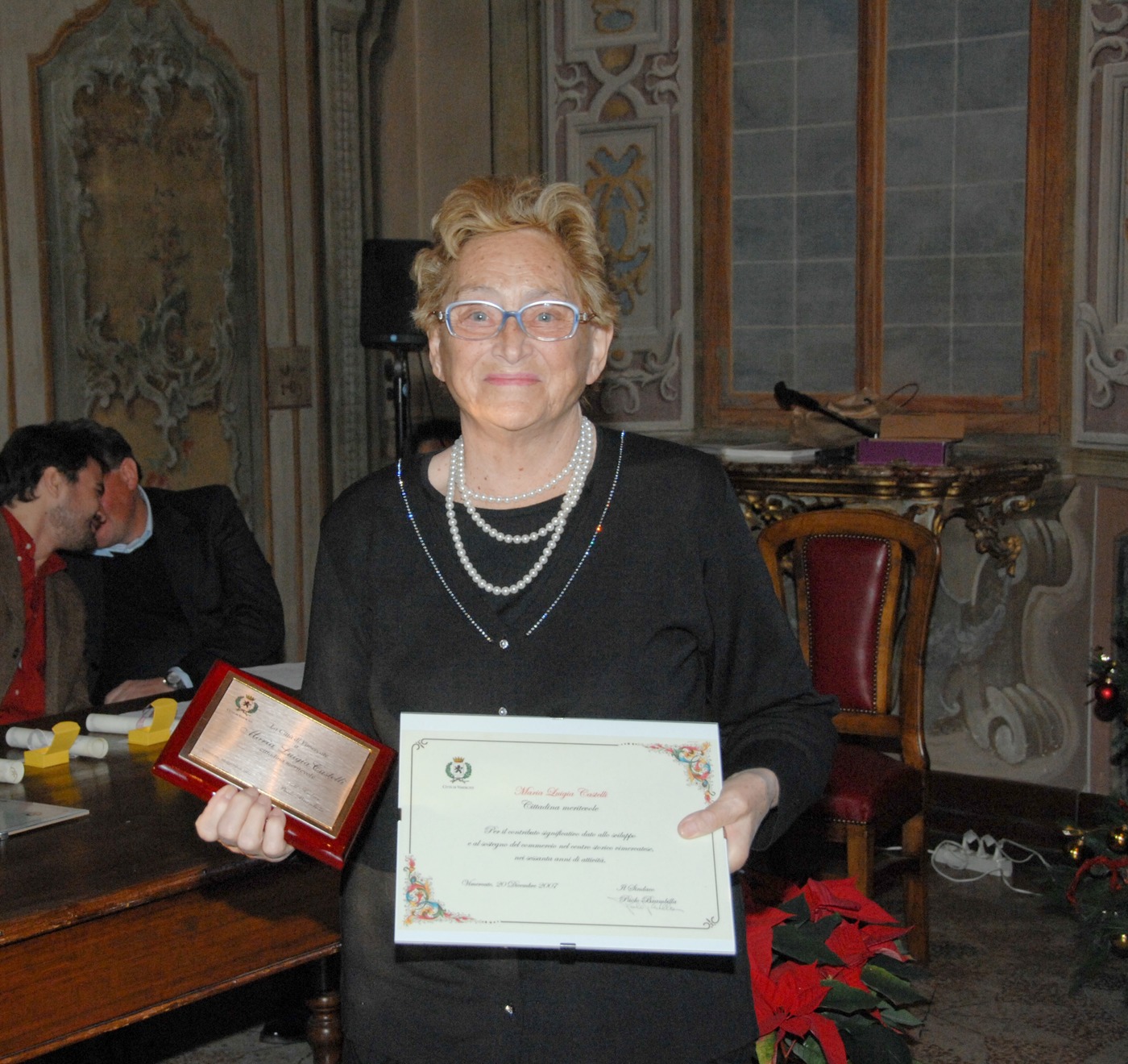 della cerimonia di premiazione dei cittadini vimercatesi benemeriti, svoltasi nella Sala Cleopatra di Palazzo Trotti il 21