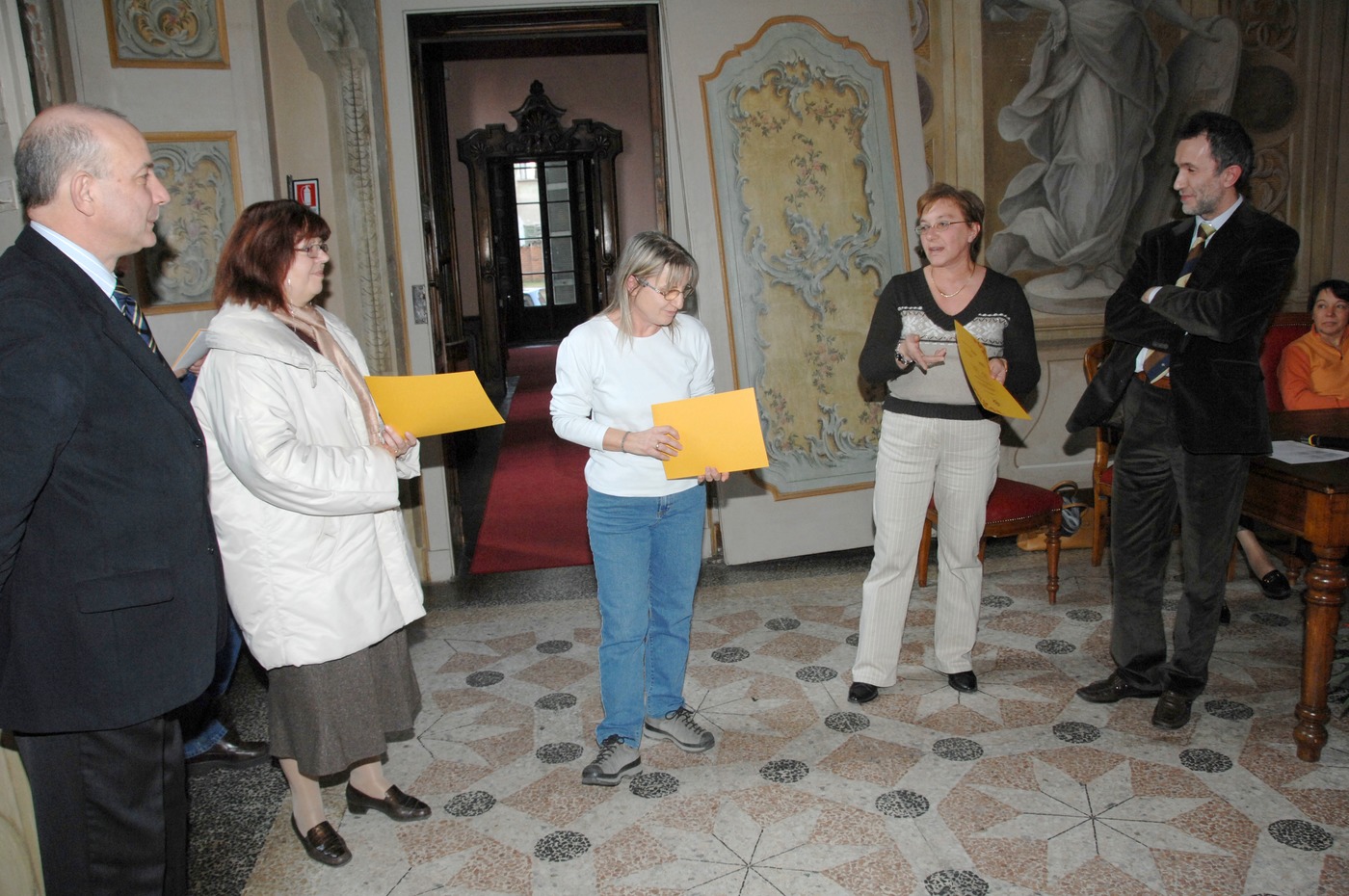 Foto di gruppo a Palazzo Trotti dei vincitori del "Premio per l'innovazione 2007", indetto dal Comune di Vimercate per