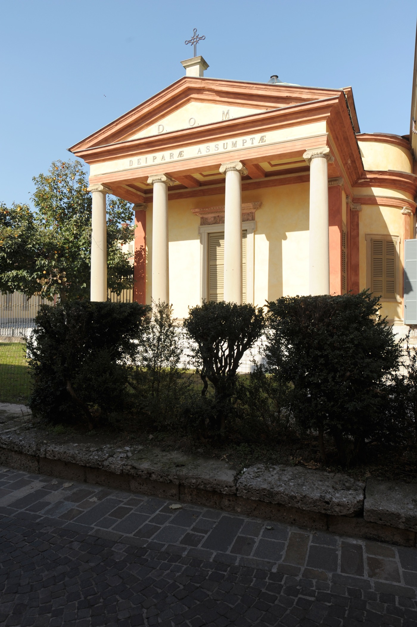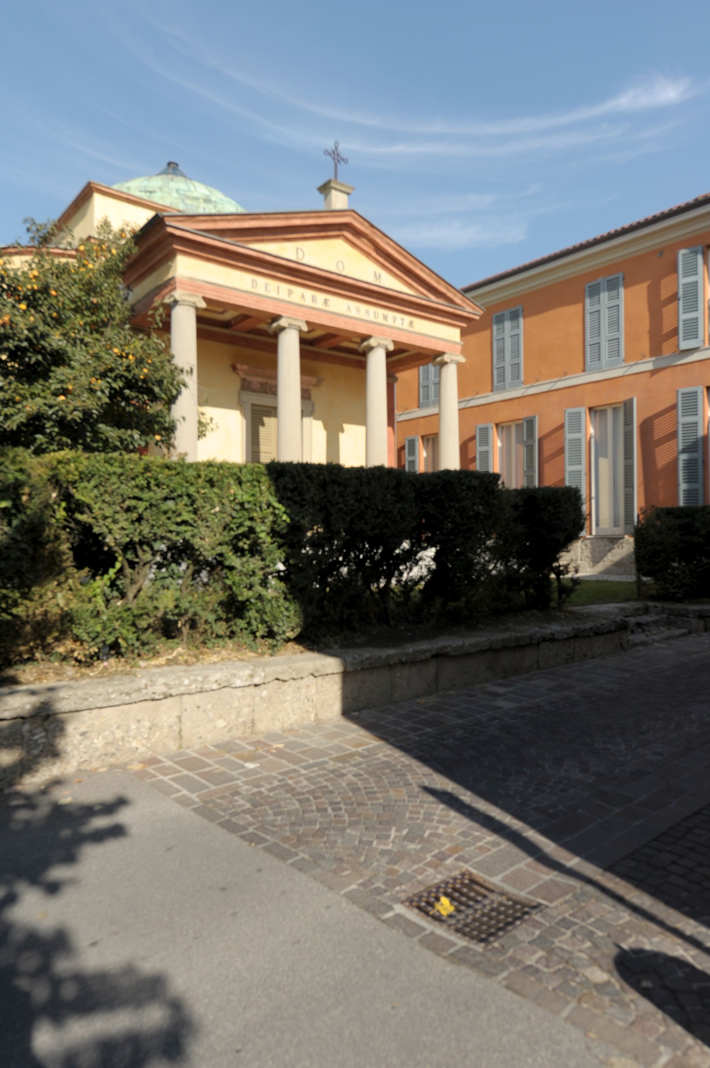 Il tempietto di forme neoclassiche, adibito a cappella privata, collocato a una delle estremita` dell'ingresso monumentale della Villa Gallarati Scotti di Oreno.