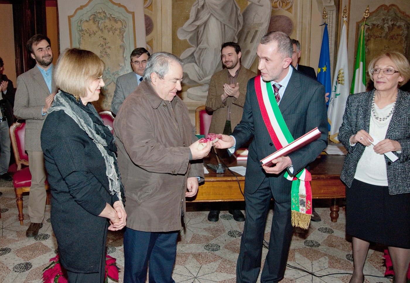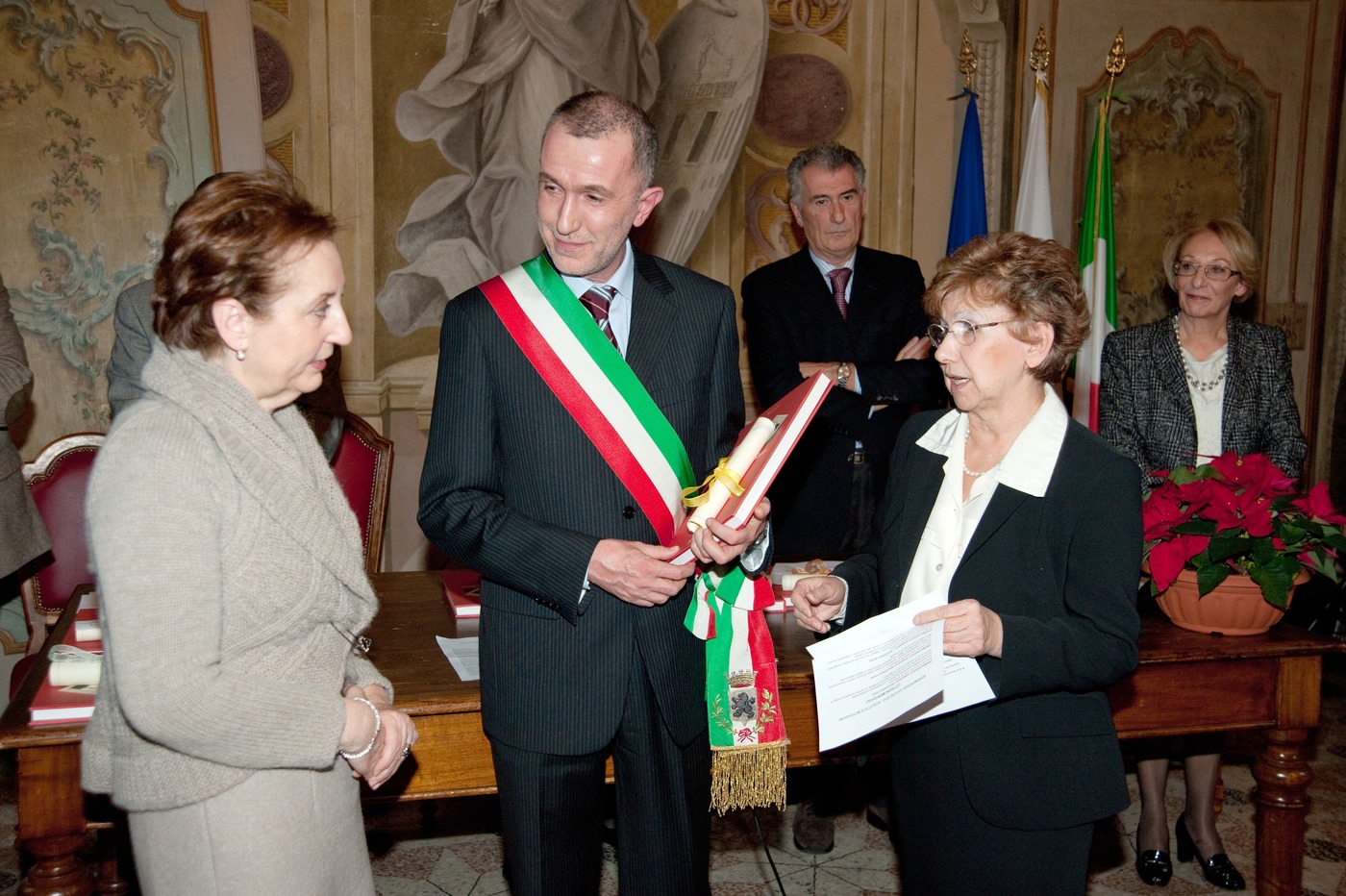 della cerimonia di premiazione dei cittadini vimercatesi benemeriti, svoltasi nella Sala Cleopatra di Palazzo Trotti il 22