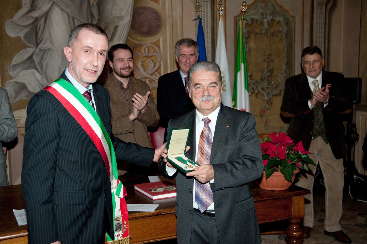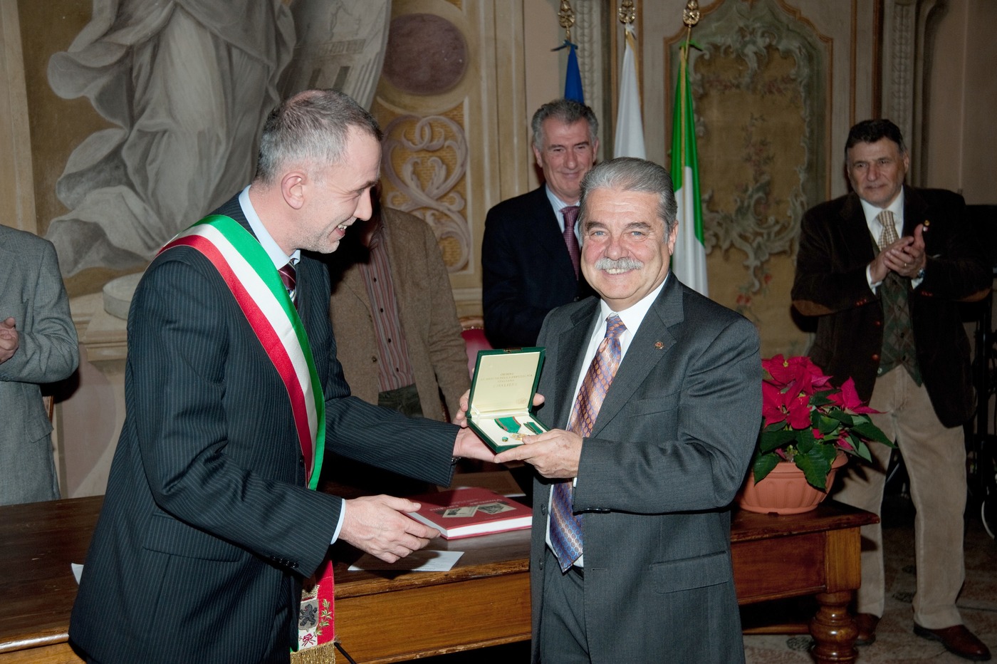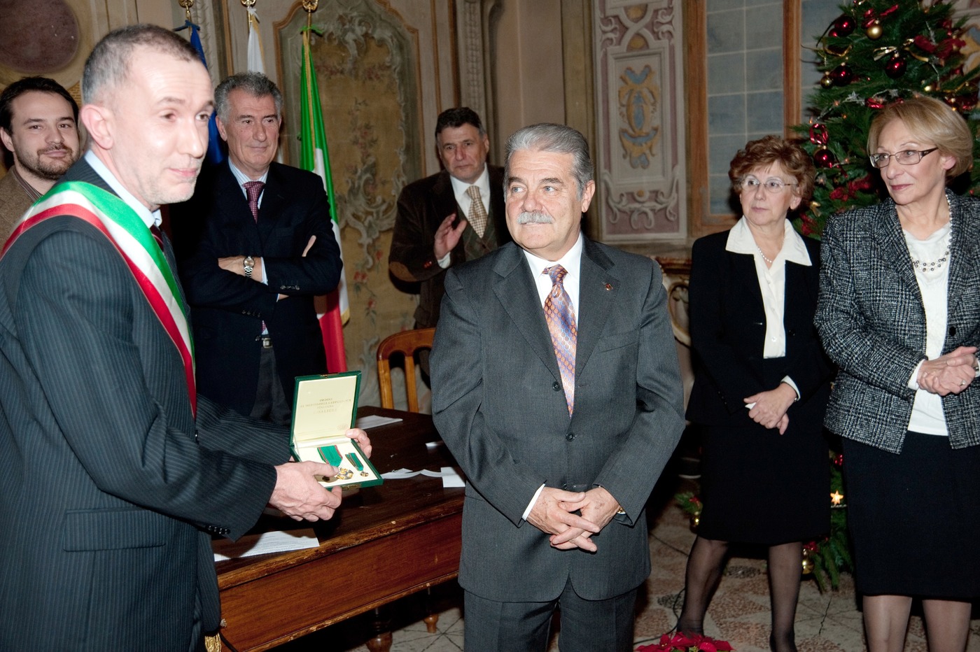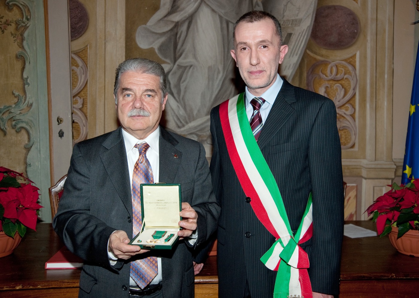 In occasione della cerimonia di premiazione dei cittadini vimercatesi benemeriti, svoltasi nella Sala Cleopatra di Palazzo Trotti il 22 dicembre 2010, il sindaco Paolo Brambilla consegna l'onorificenza al merito della Repubblica (conferita dal Presidente della Repubblica il 2 giugno 2010) a Sergio Valtolina, storico volontario e dirigente dell'Avis.