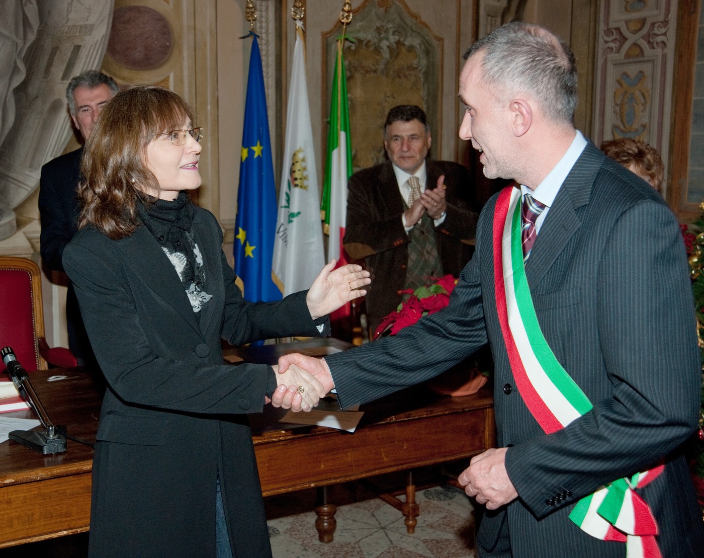 22 dicembre 2010. In alto e in basso, Bianca Maria Cereda con l'assessore Roberto Rampi, e, al centro, con il sindaco Paolo