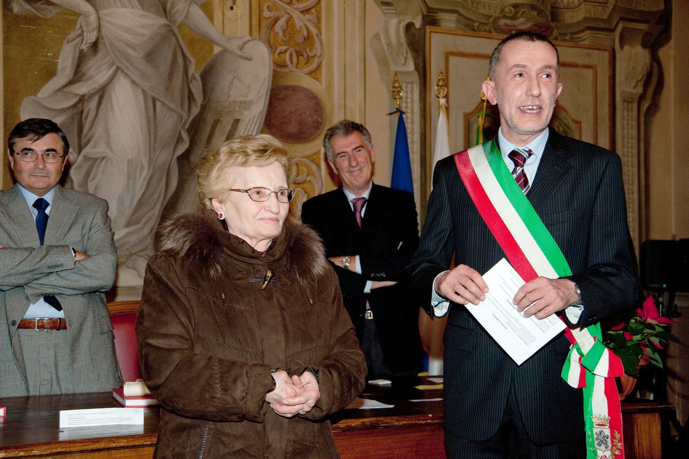 cerimonia di premiazione dei cittadini vimercatesi benemeriti, svoltasi nella Sala Cleopatra di Palazzo Trotti il 22 dicembre