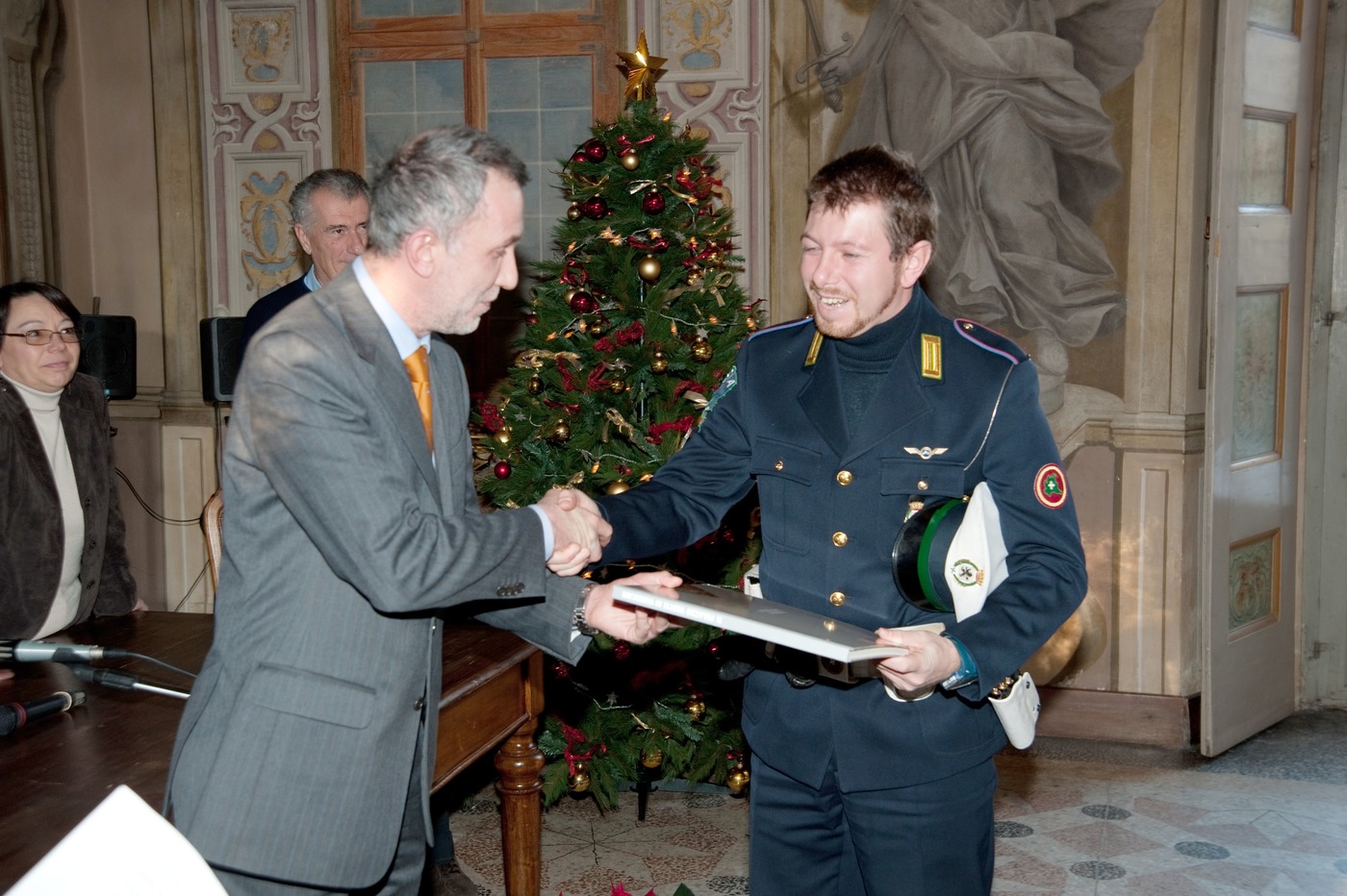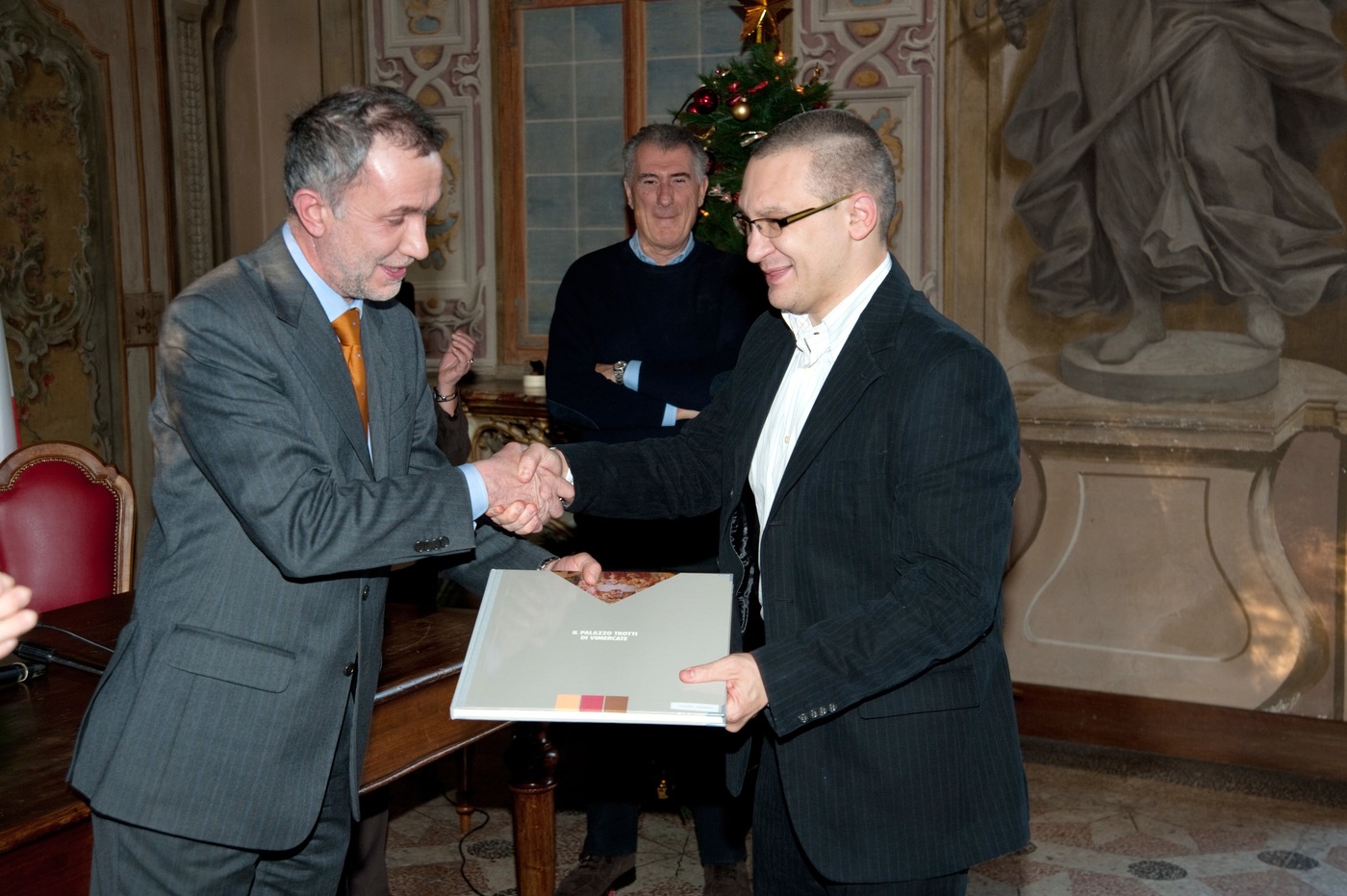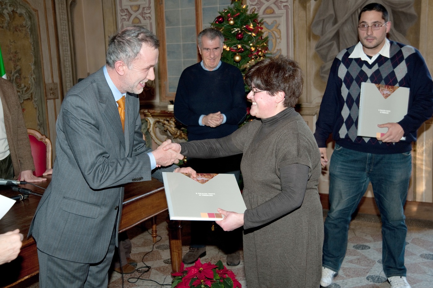 tradizionale scambio di auguri per le festivita` natalizie a Palazzo Trotti. Dall'alto: Giacomo Bocchi, Andrea Brambilla, Elena