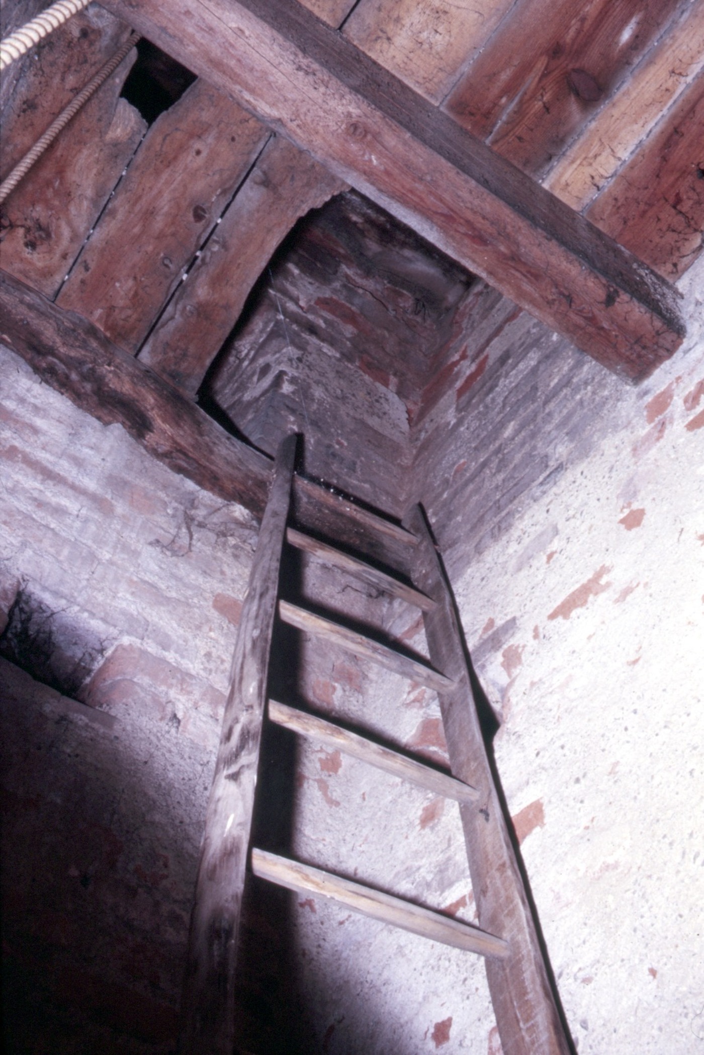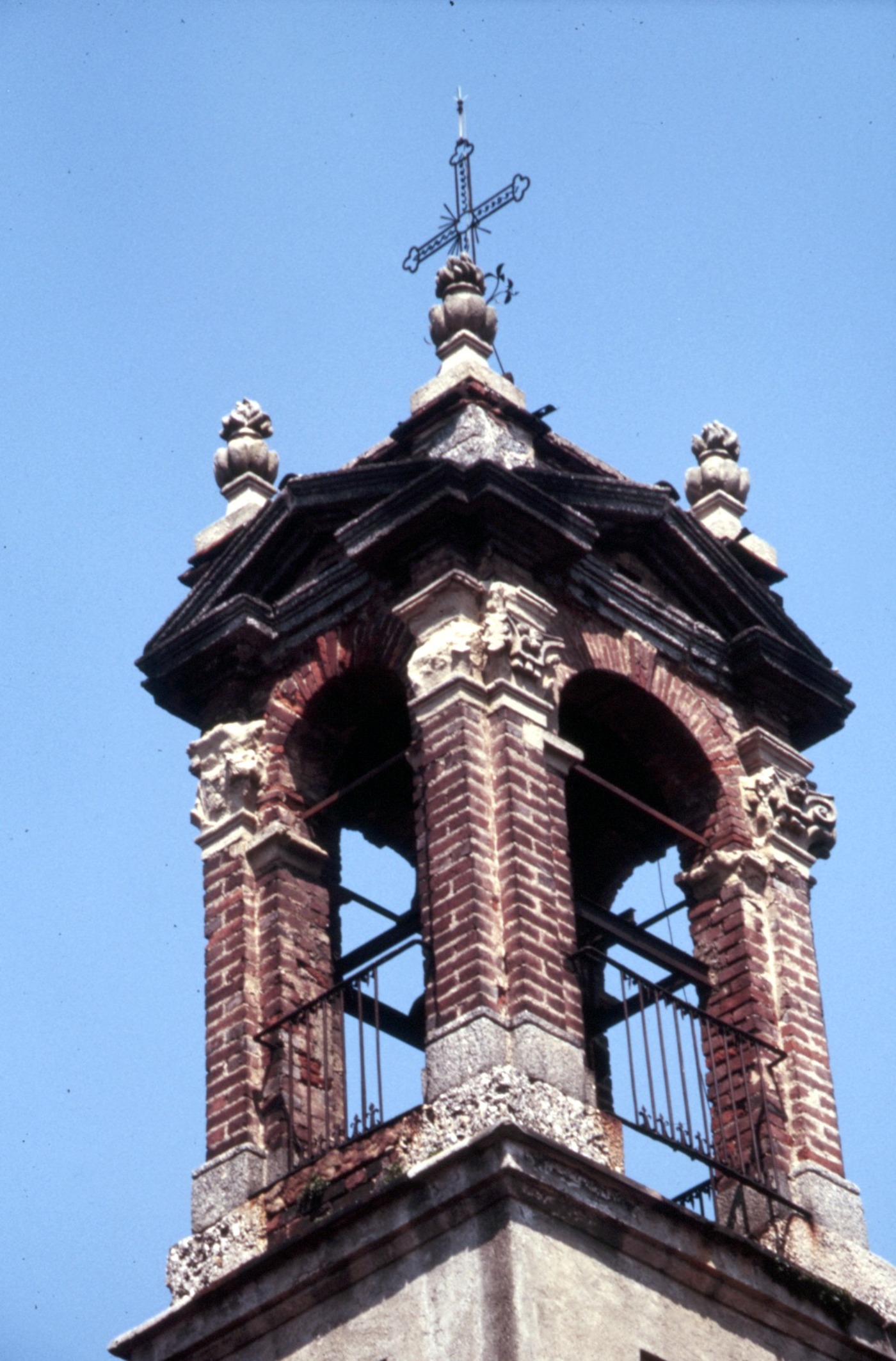 Particolari del campanile della Chiesa di San Francesco, annessa al Convento dei Padri Cappuccini ad Oreno. In basso, la
