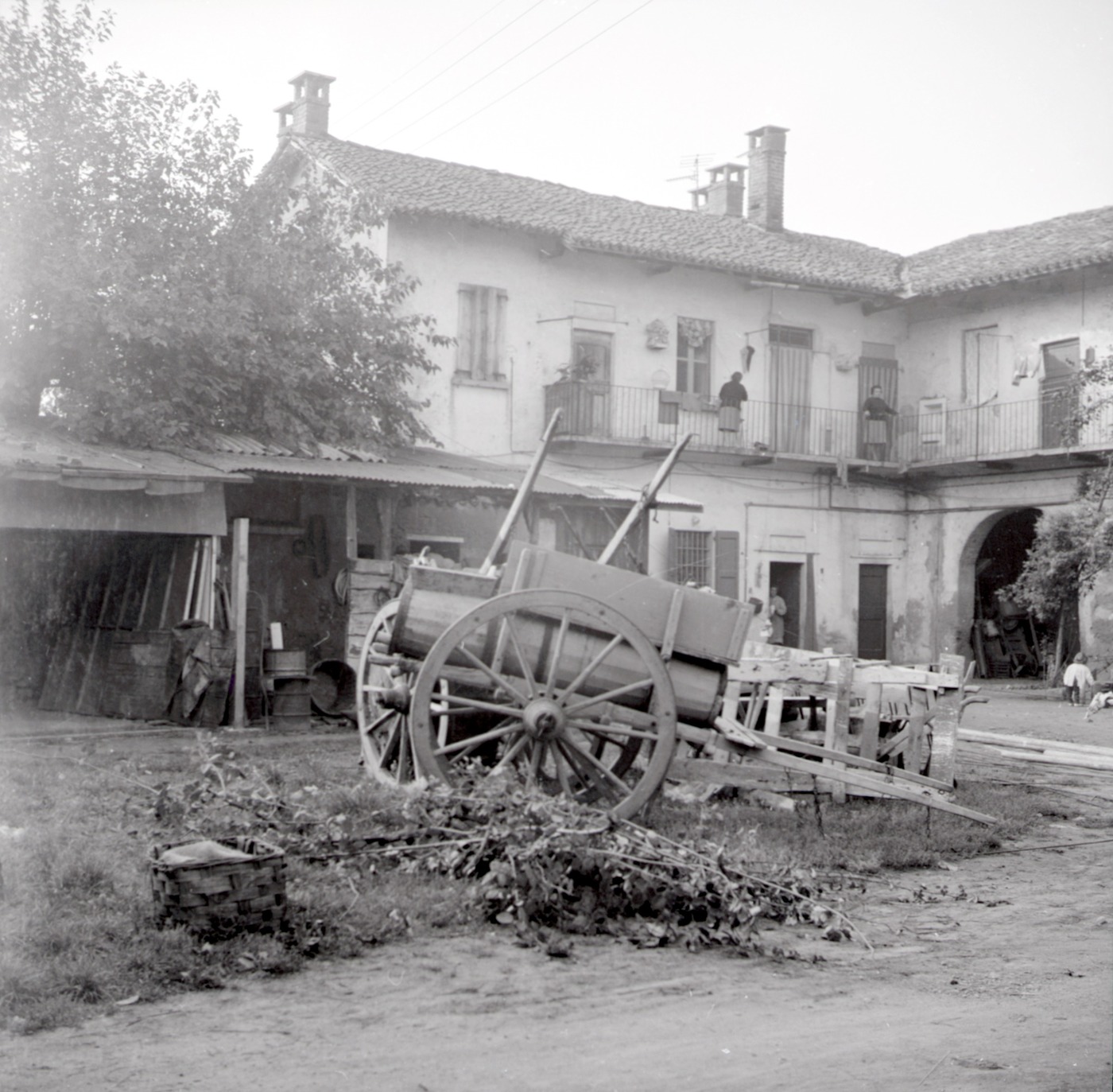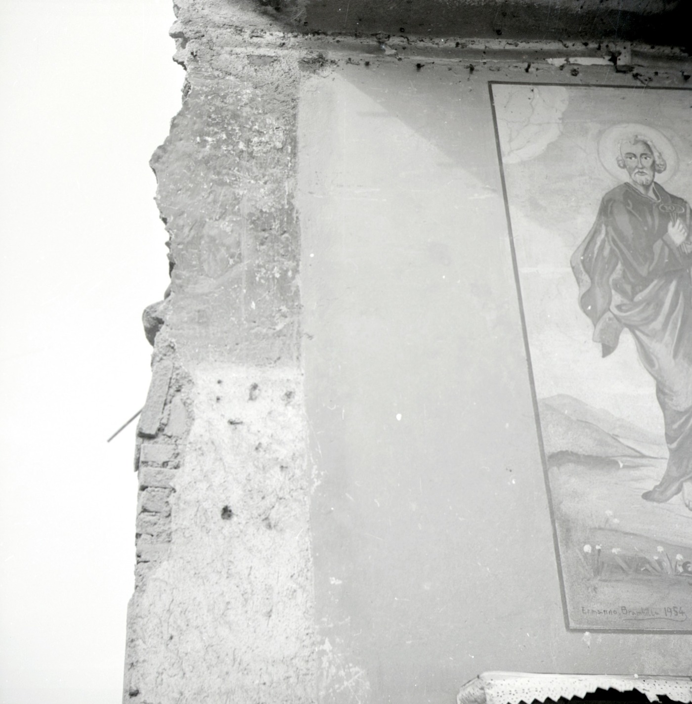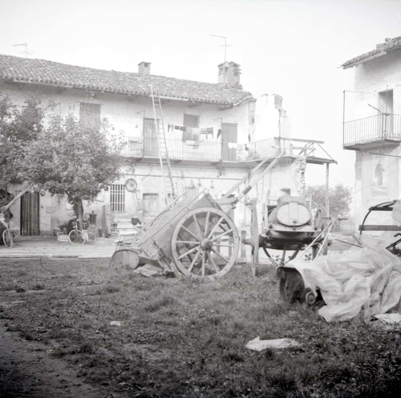 Il cortile della cascina San Pietro, abbattuta nel 1982. Nella terza foto dall'alto, porzione di un dipinto votivo murale dedicato