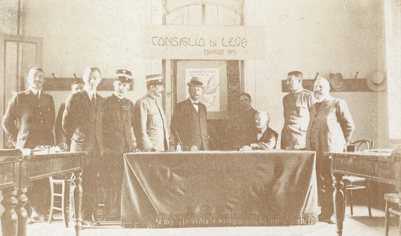 I componenti del consiglio di leva di Monza del 1913. Tra di loro, Carlo Tolla (in alto, terzo da destra,