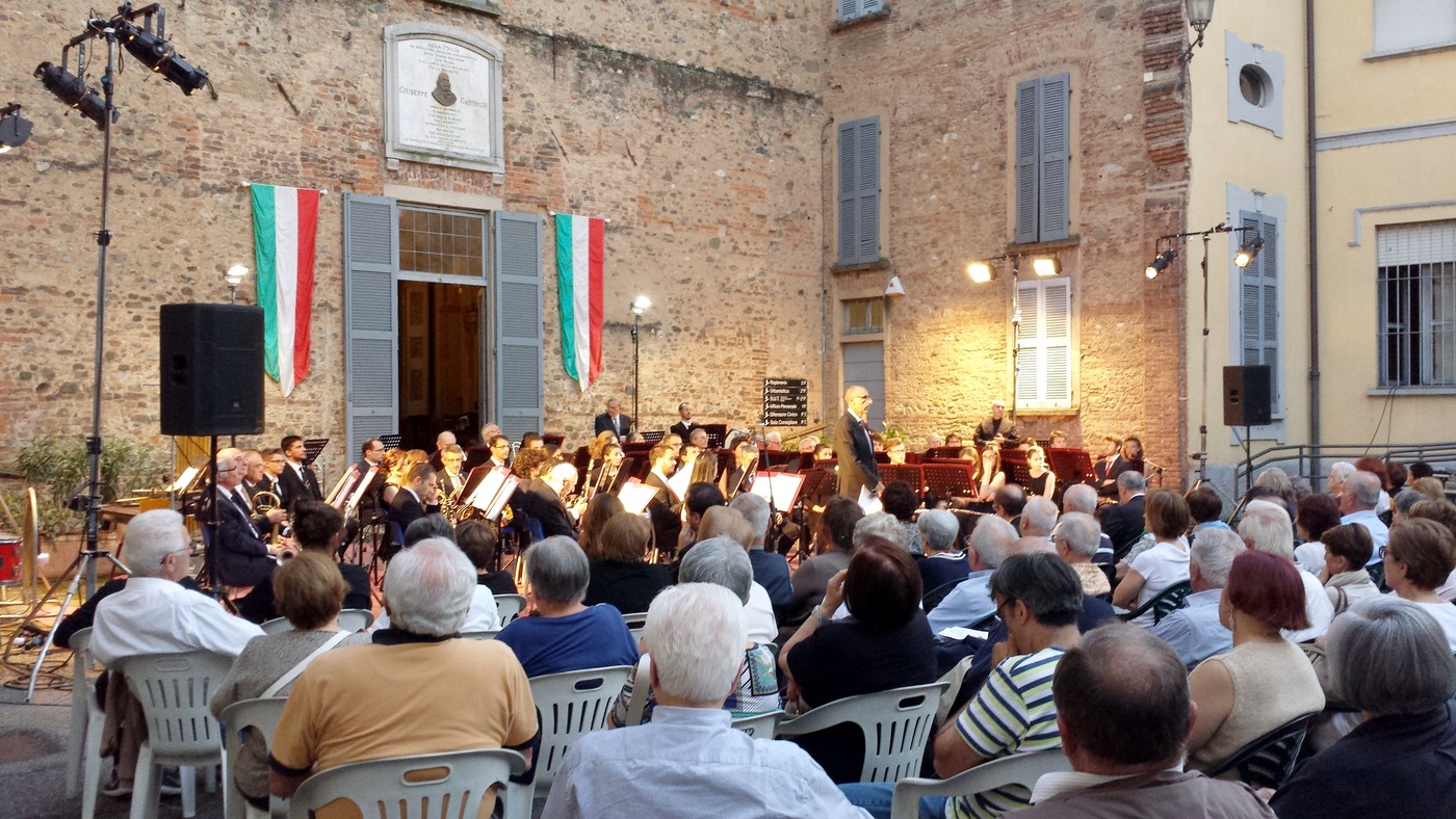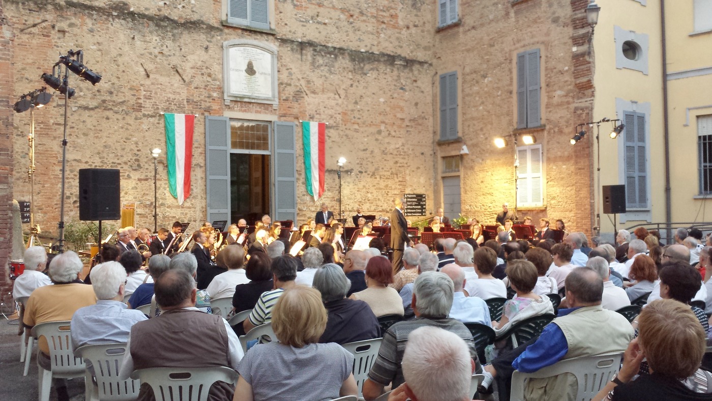 Il Civico corpo musicale di Vimercate diretto dal maestro Pietro Pilo si esibisce nel cortile di palazzo Trotti, in occasione