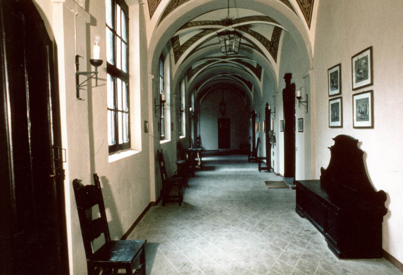Il lato sud del portico interno delimitante il cortile del chiostro dell'ex Convento di San Francesco, ora Casa Banfi.